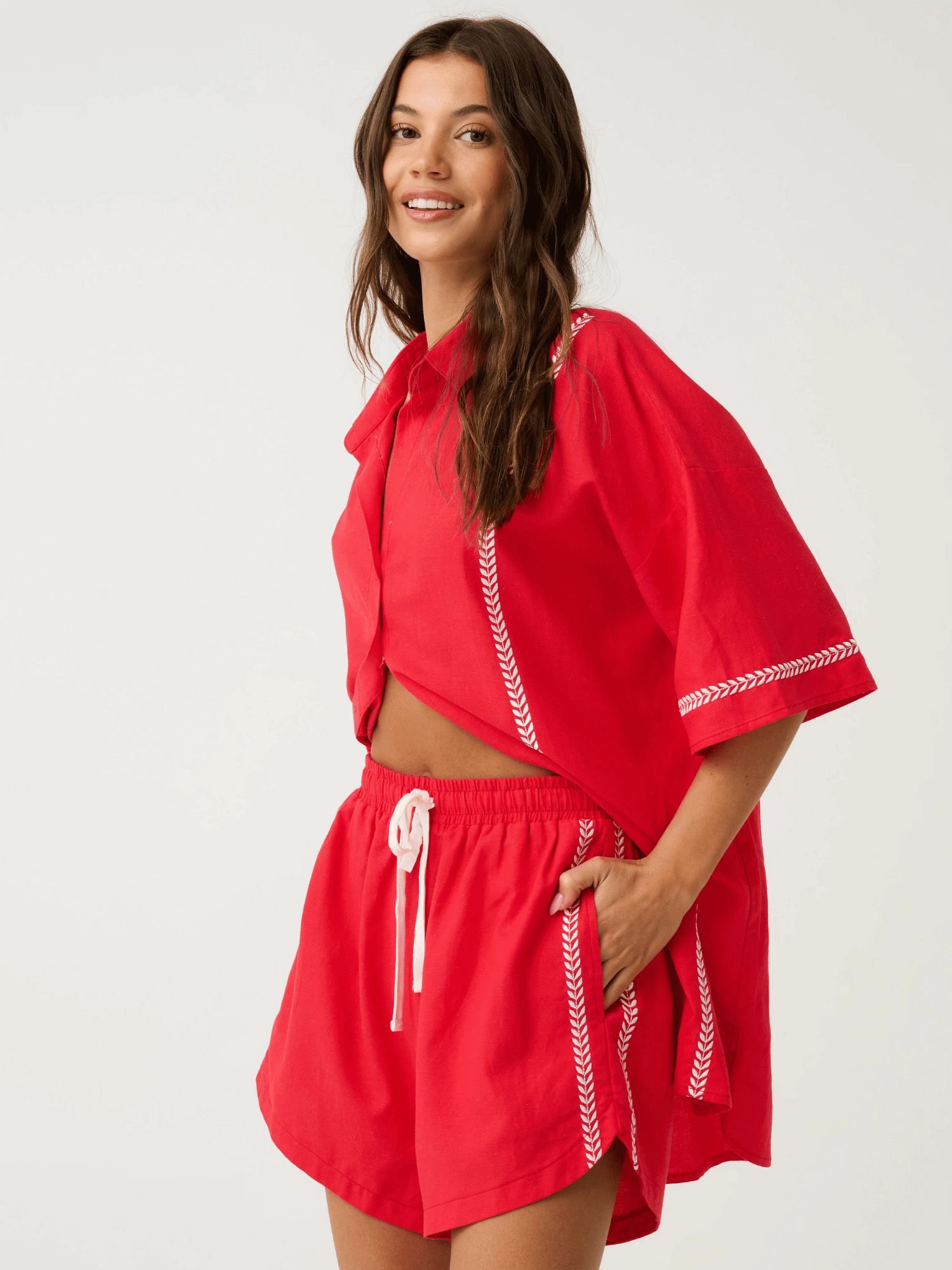 Manly Stripe Vee Tee | Hot Pink + White Stripe