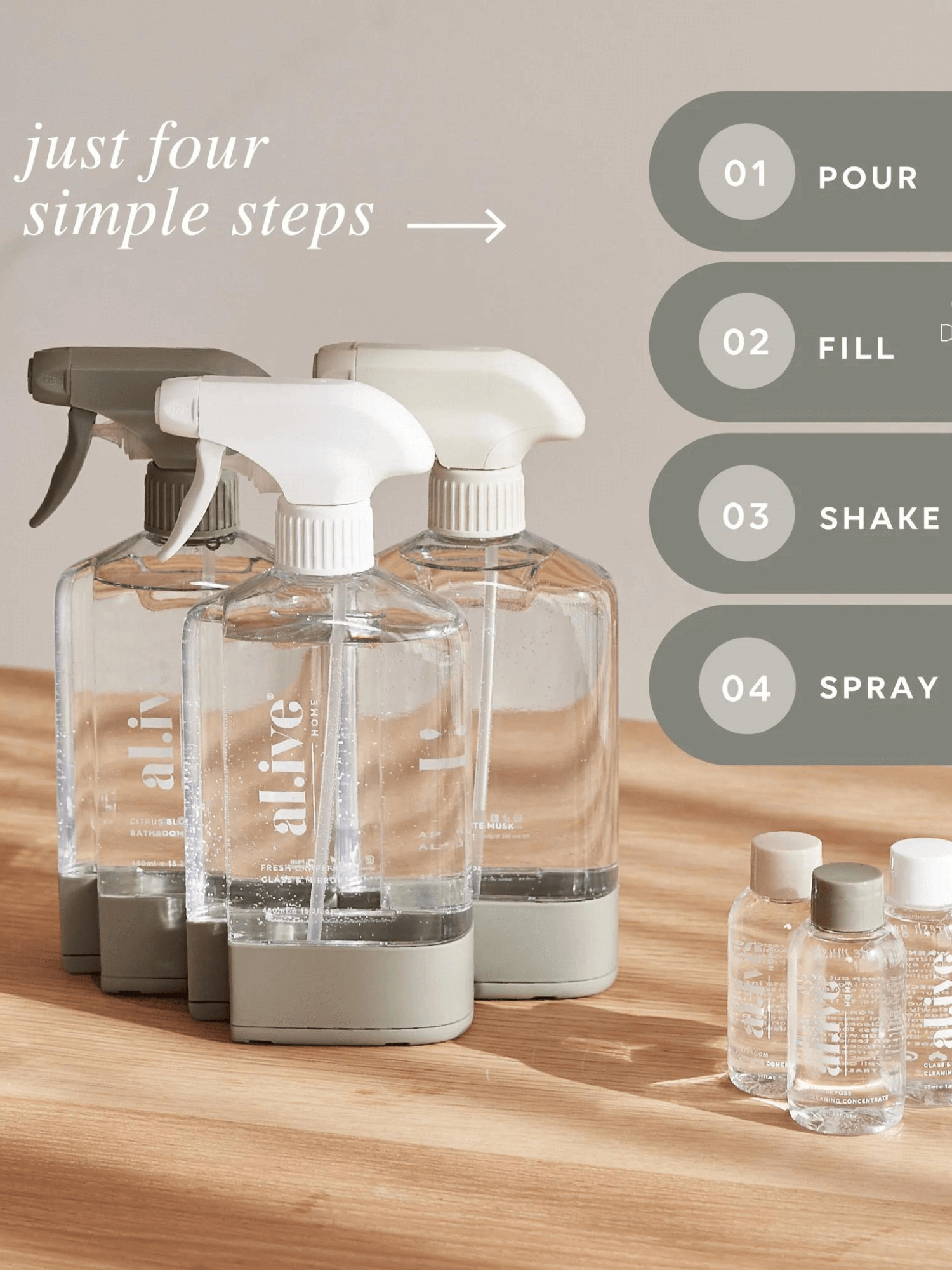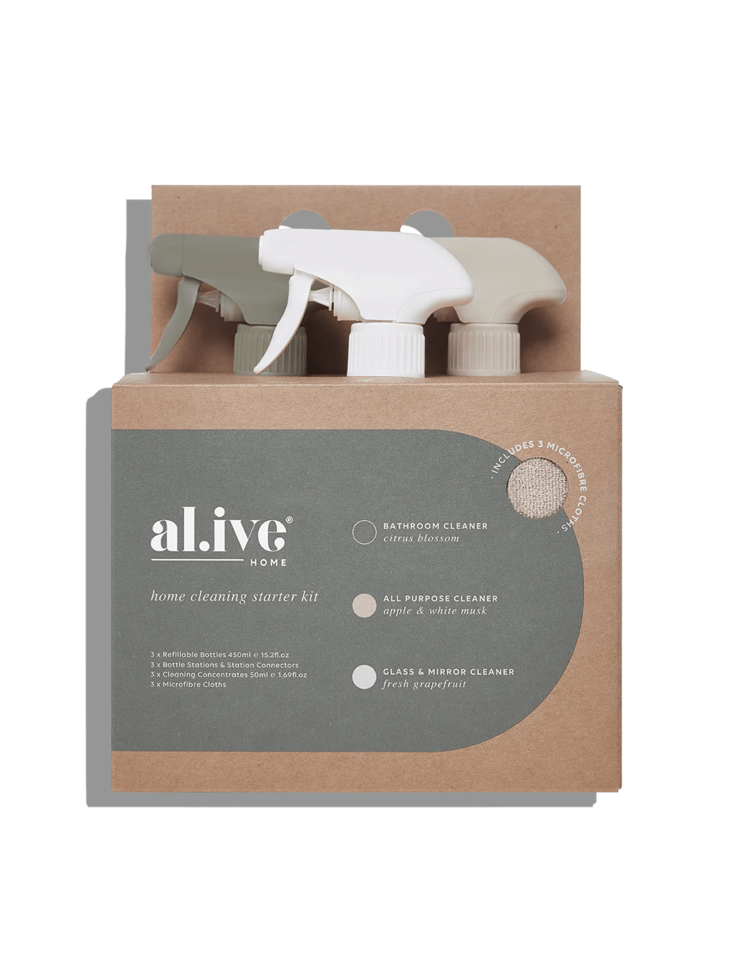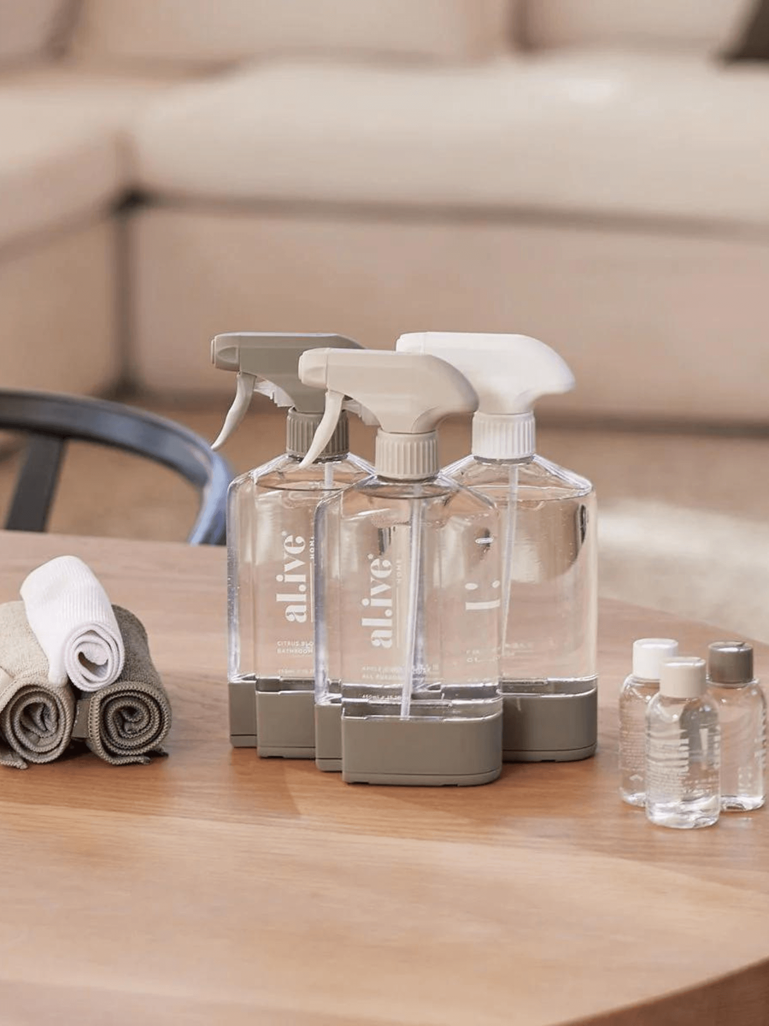Introducing the al.ive home Cleaning Starter Kit, the perfect solution for anyone looking for a convenient, effective and eco-friendly cleaning system.