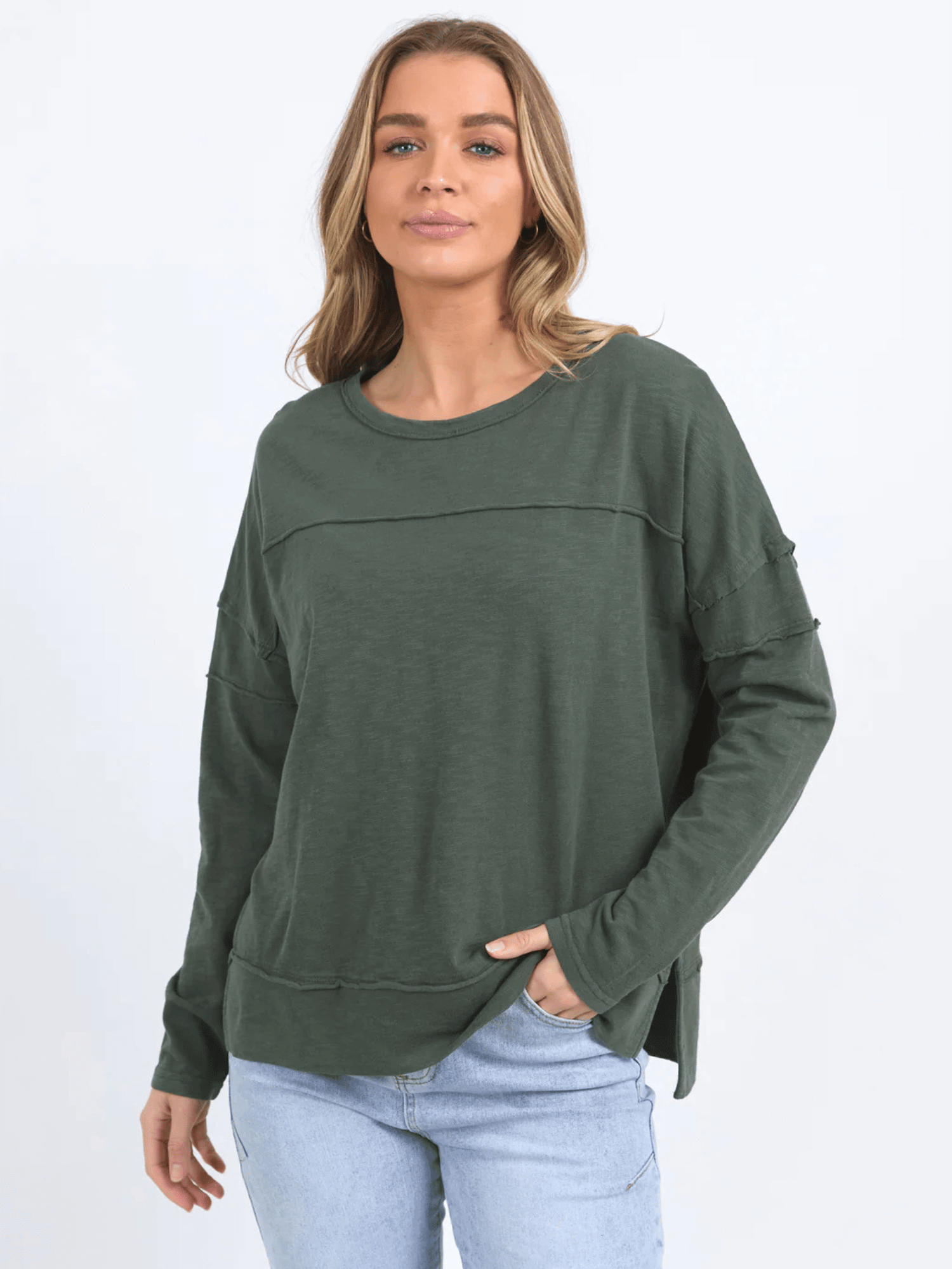 The Jayne Throw on Top is the perfect lightweight, long sleeve style to take you through the seasons. Cut from a comfy, cotton slub jersey this women's top features a crew neck, trendy exposed stitching and side split hi-low hem. Seriously versatile we know you'll be wearing this on repeat.