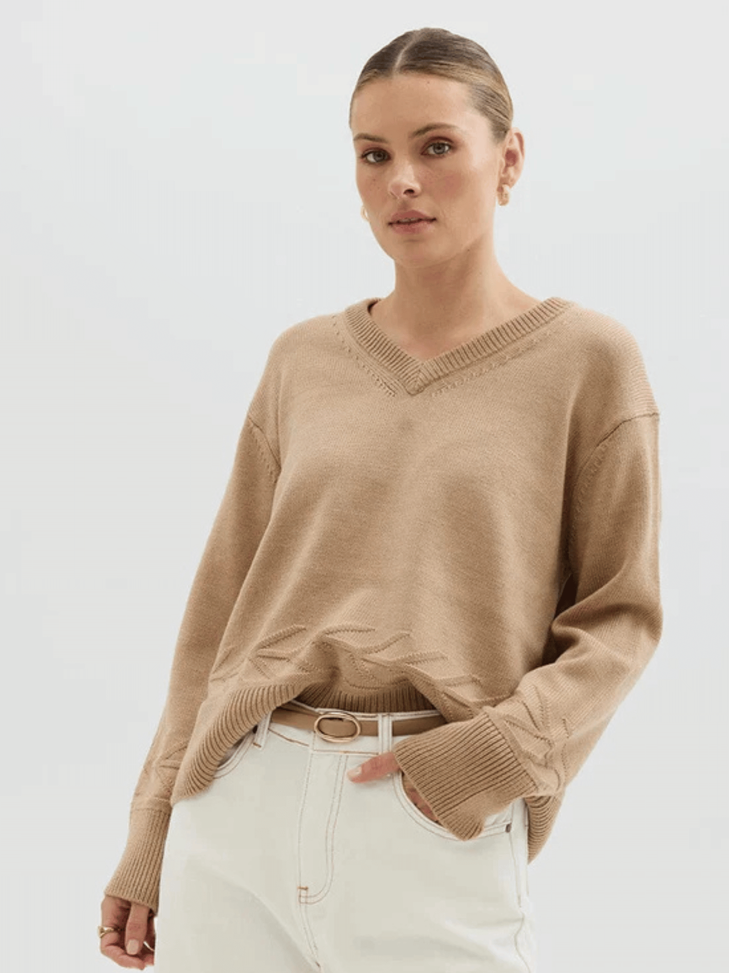 Chunky V Neck Sweater | Pale Toffee