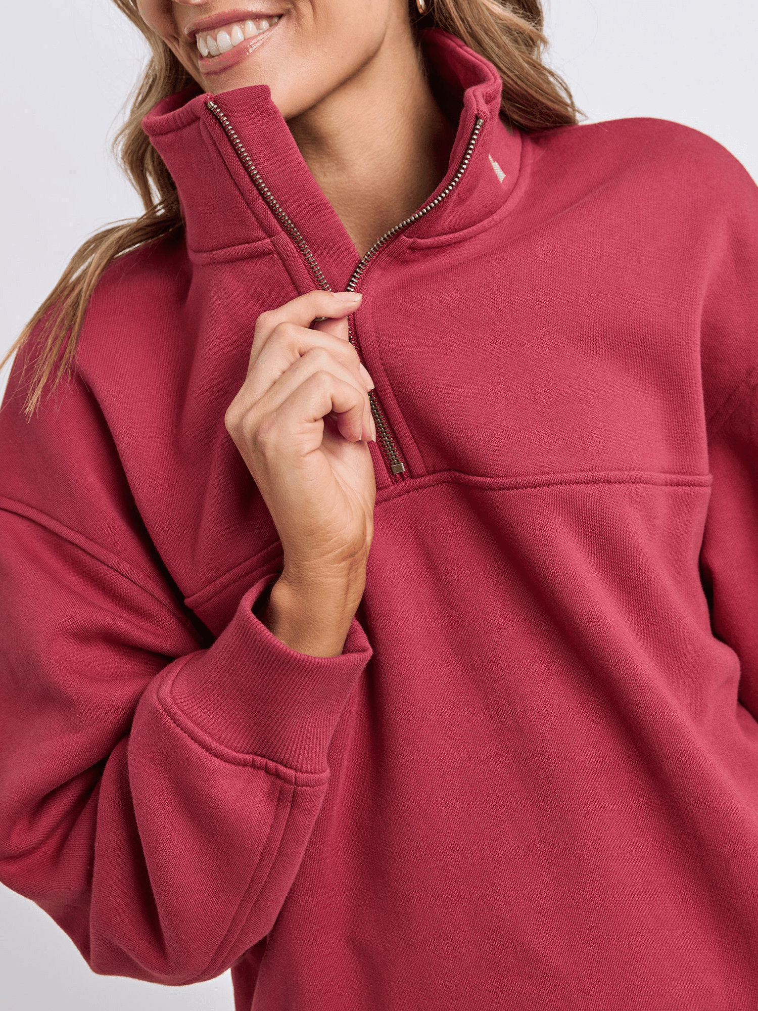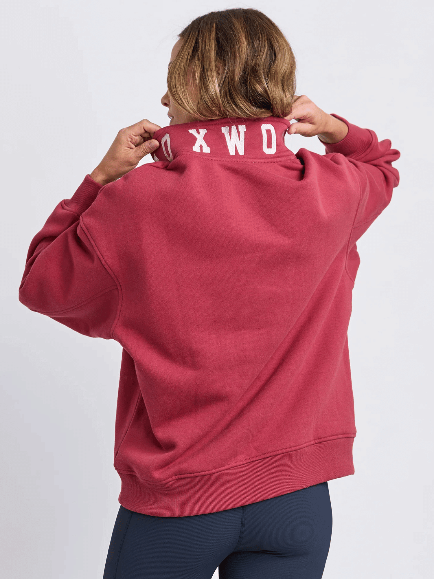 College Contrast Zip Crew | Rust with Pink