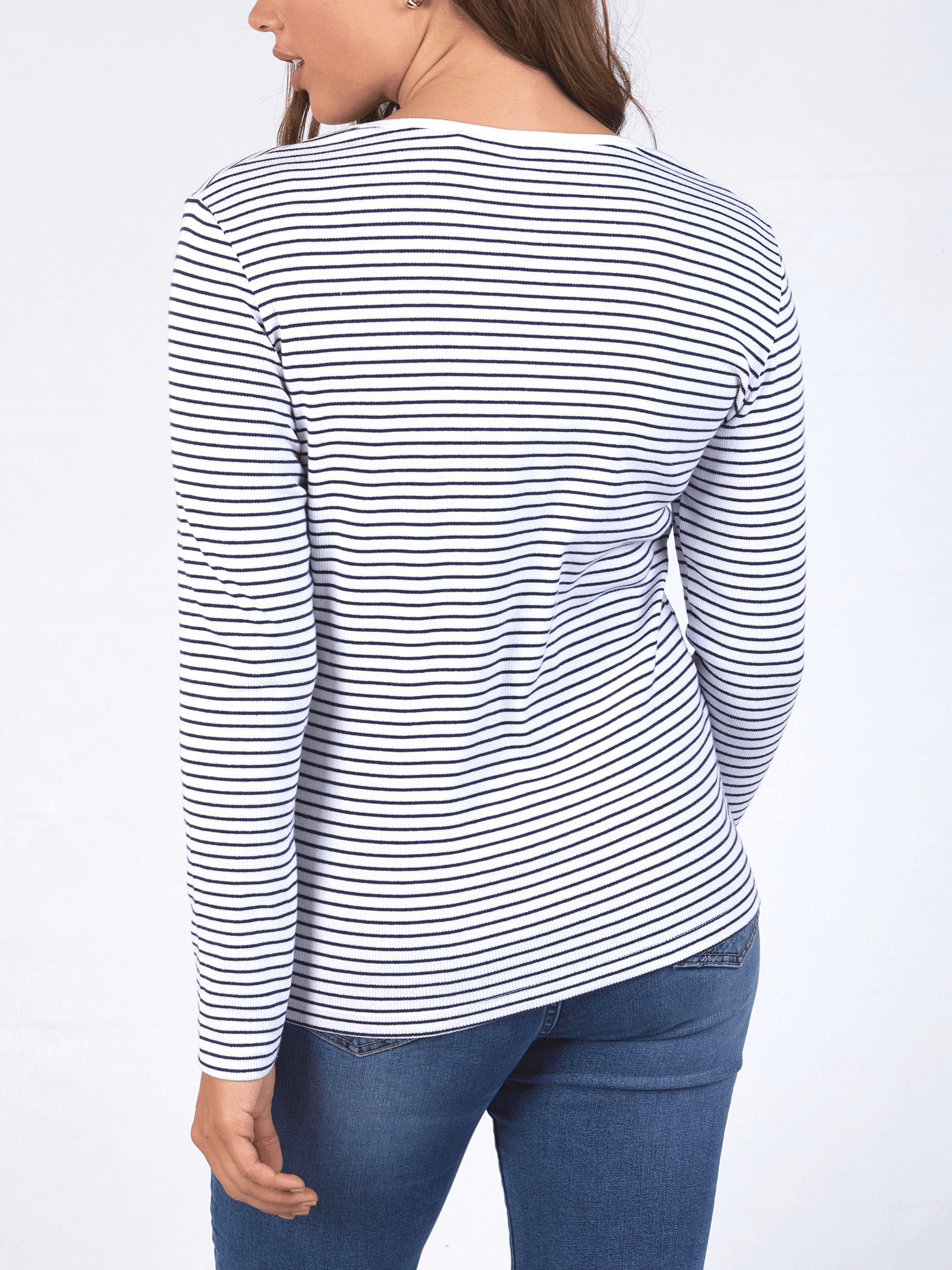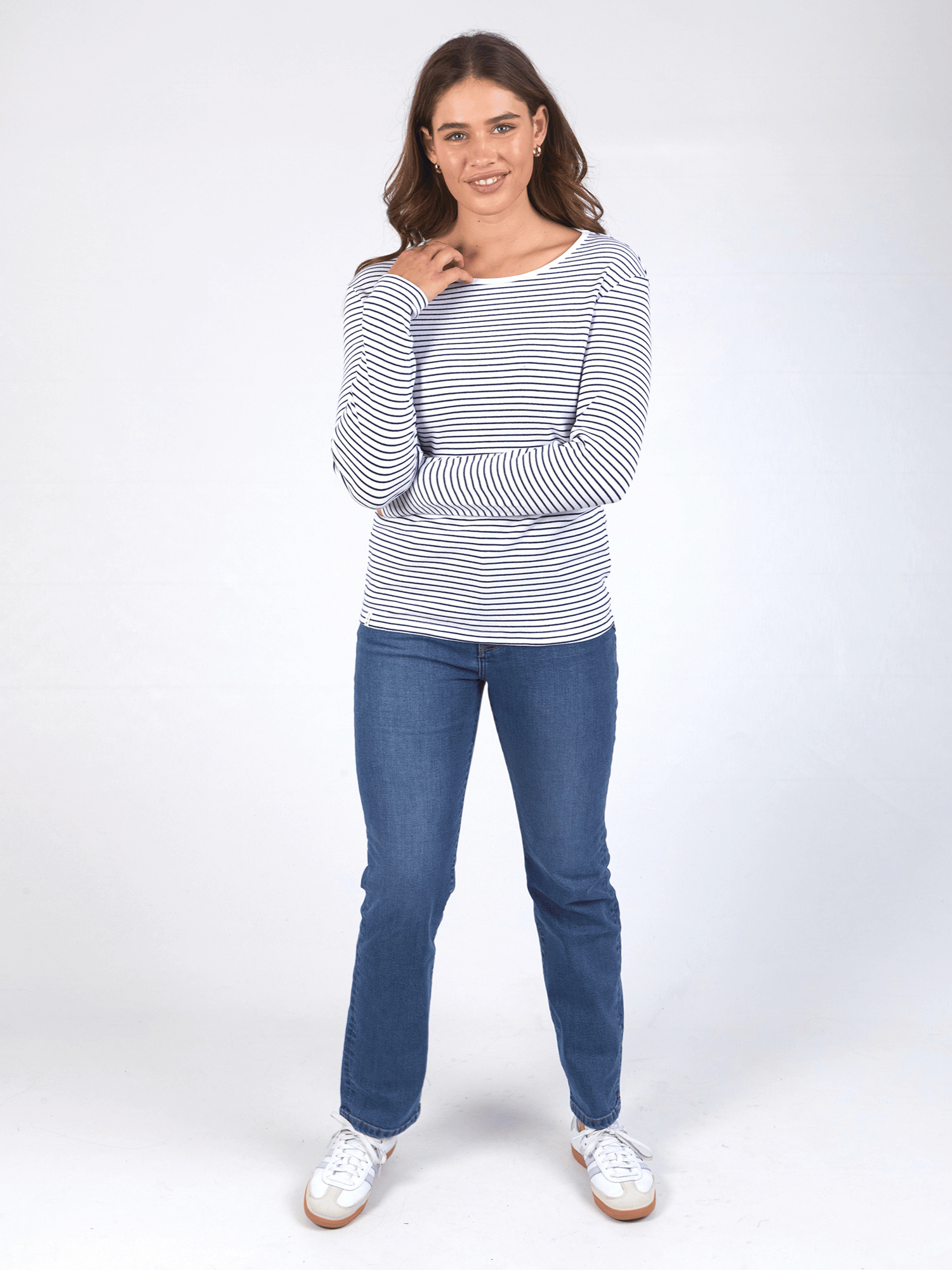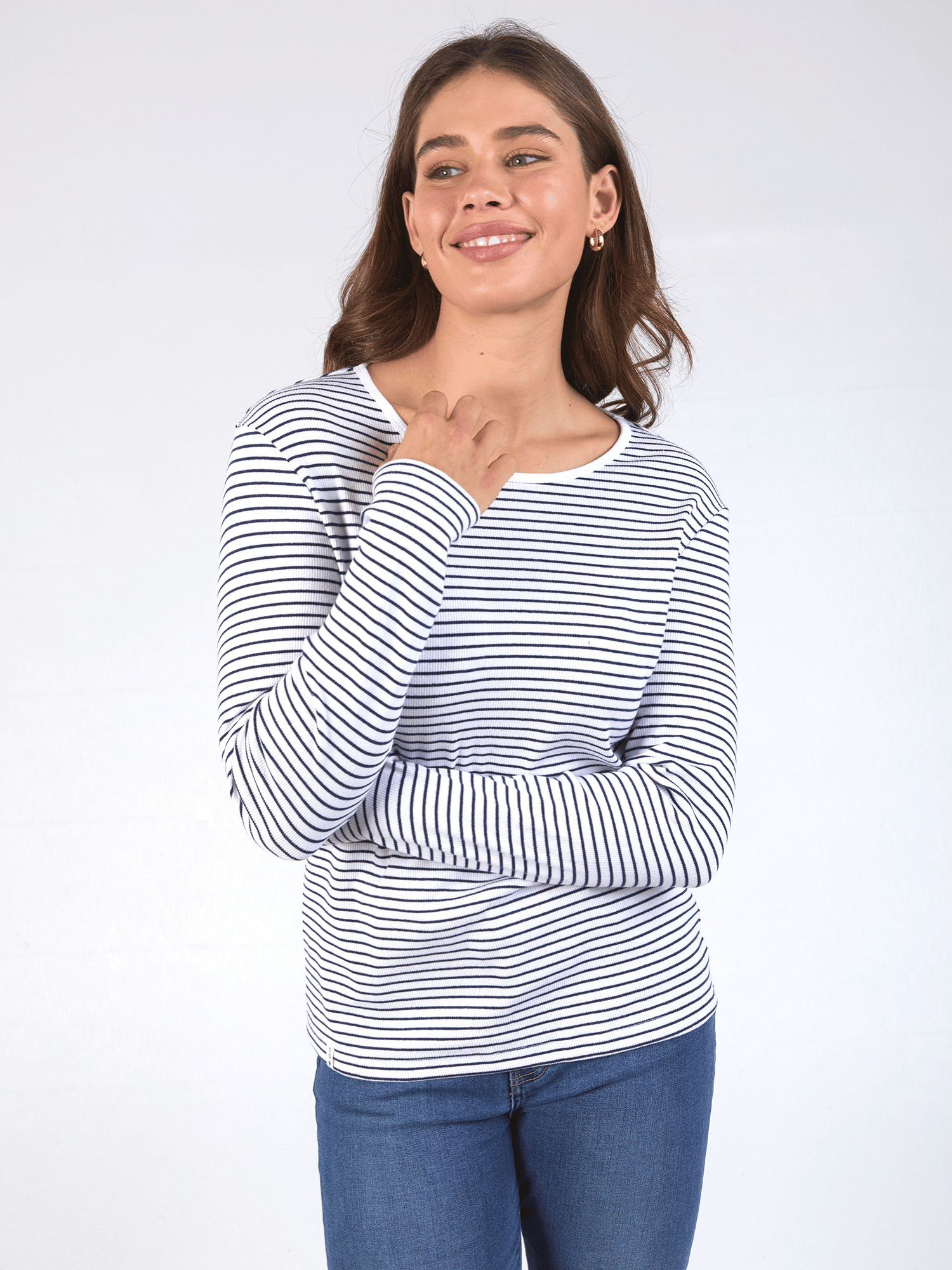 Hayley Rib Long Sleeve Tee | White + Navy Stripe