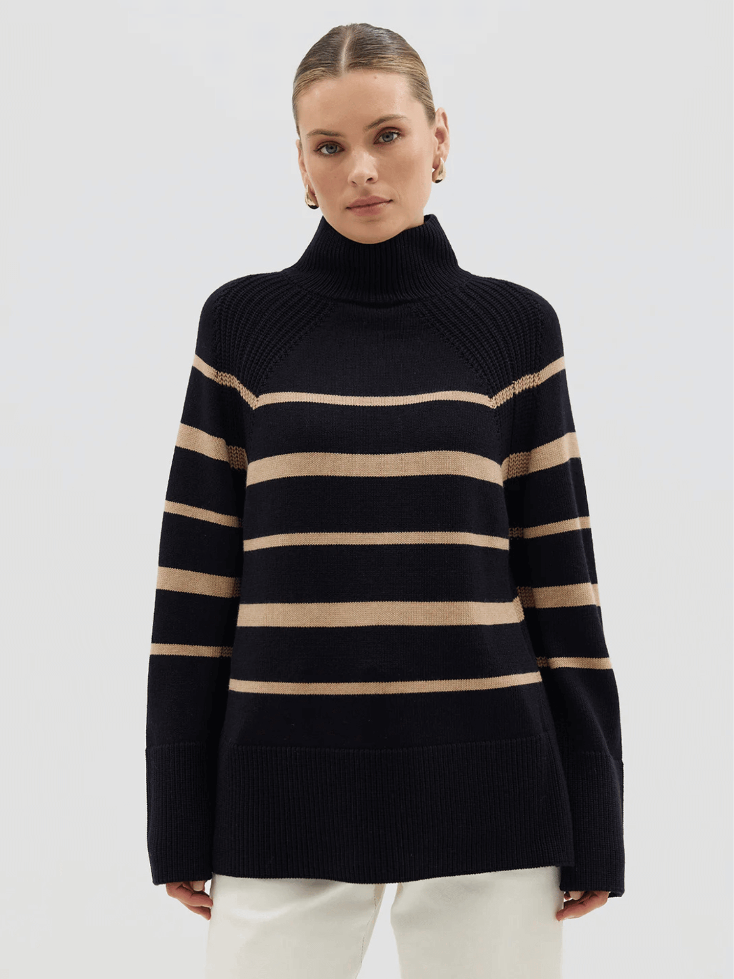 High Neck Stripe Sweater | Black + Pale Toffee