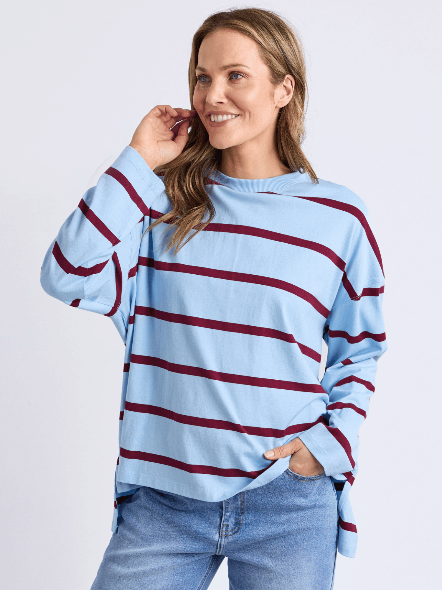 Callie Stripe Long Sleeve Tee | Light Blue + Plum Stripe