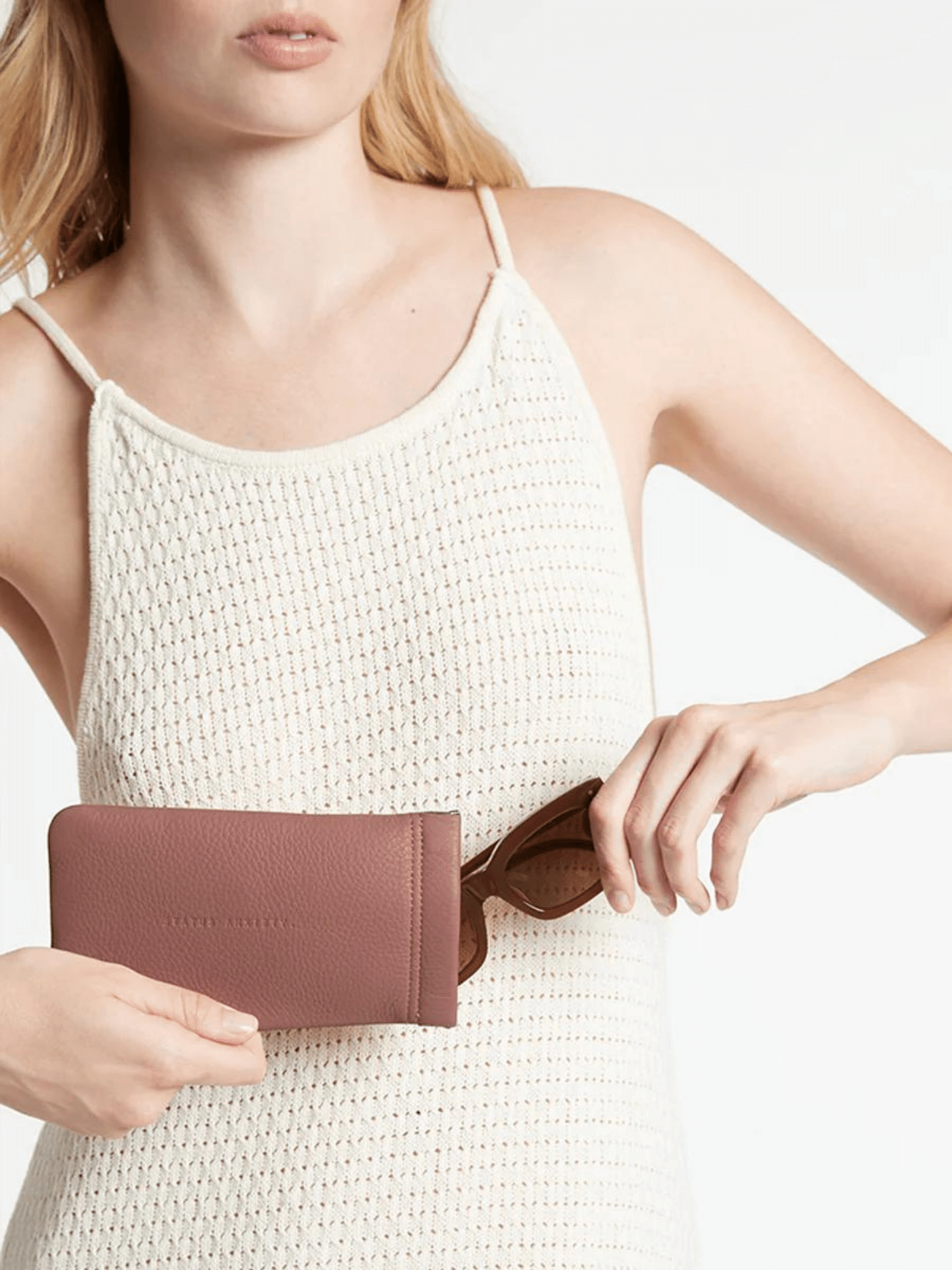 Likely to grow in its intrinsic value over time, the Keepsake sunglasses pouch is made using reclaimed leather offcuts from our handbag product. Waste not want not.
