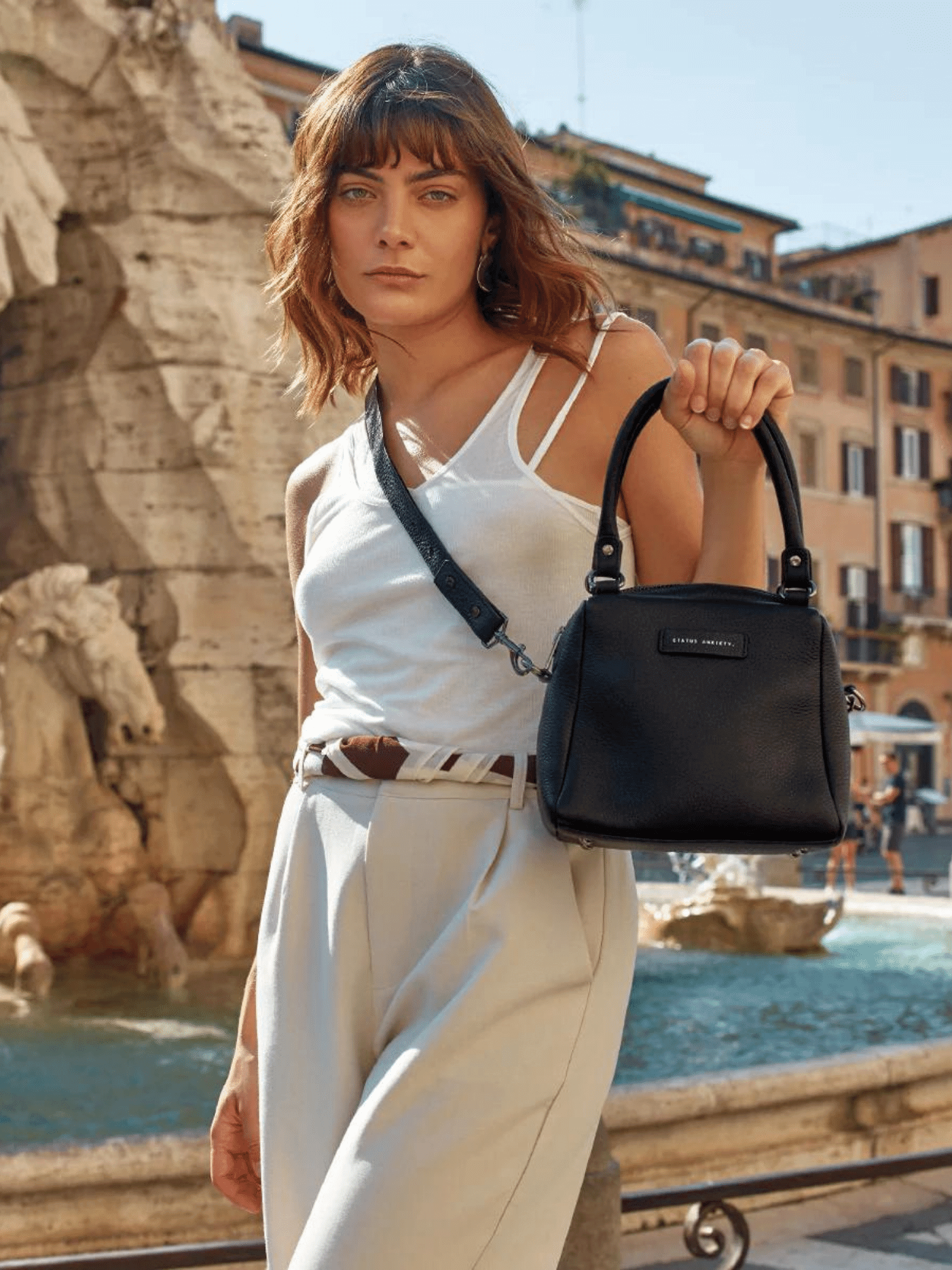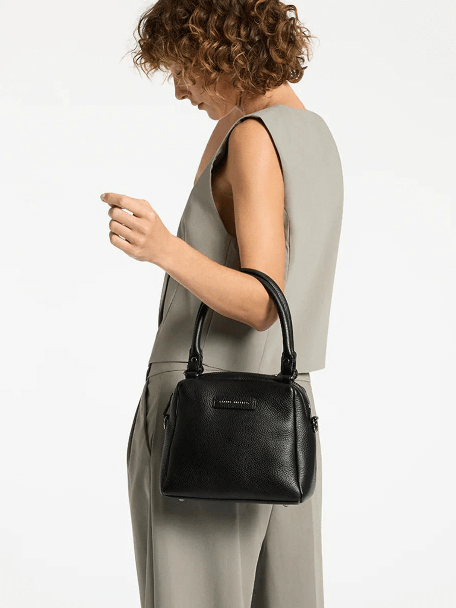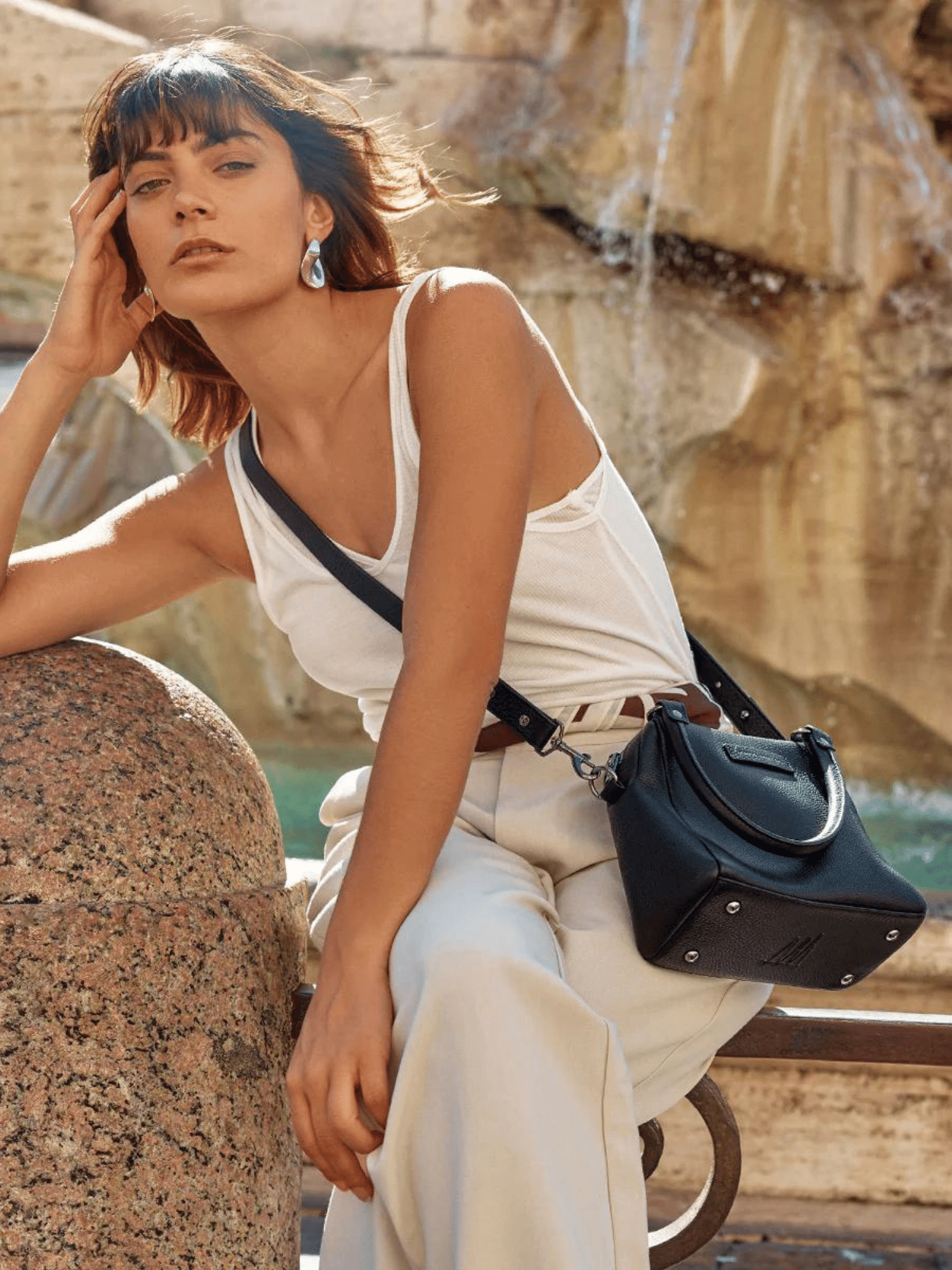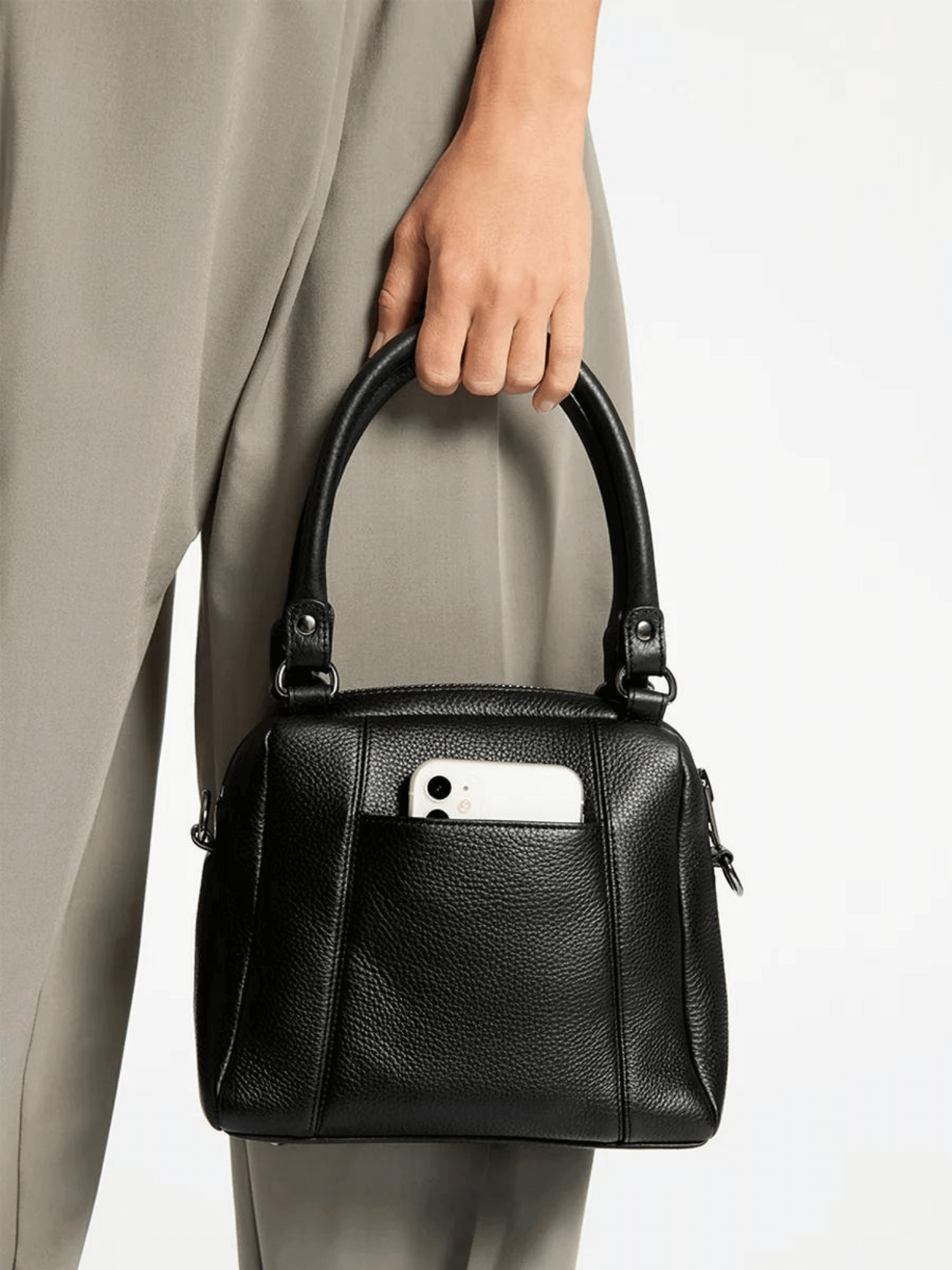 Good things come in small packages. Mini Mountains is a more compact version of the iconic Last Mountains bag. This day to night companion can be worn on elbow, shoulder, or cross body (with included long strap). Features a wide-opening main compartment, longer shoulder strap for added comfort, and secret magnet-close pocket on the outside for your phone etc.
