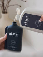 Each refill is designed to refill the 500ml al.ive body Hand & Body Wash bottle twice. With a controlled-flow spout for mess-free pouring, compact shape for easy storage, and full kerbside recyclability, it offers a practical, premium solution while extending the life of the product you already love.