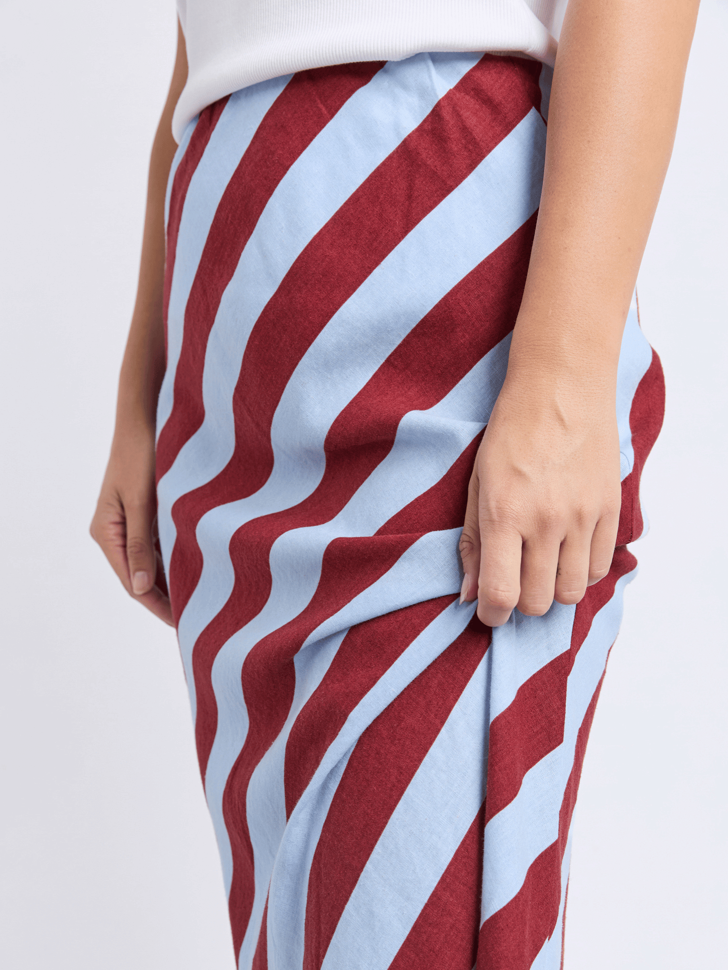 Esmarie Stripe Skirt | Russet Brown + Cerulean Stripe