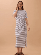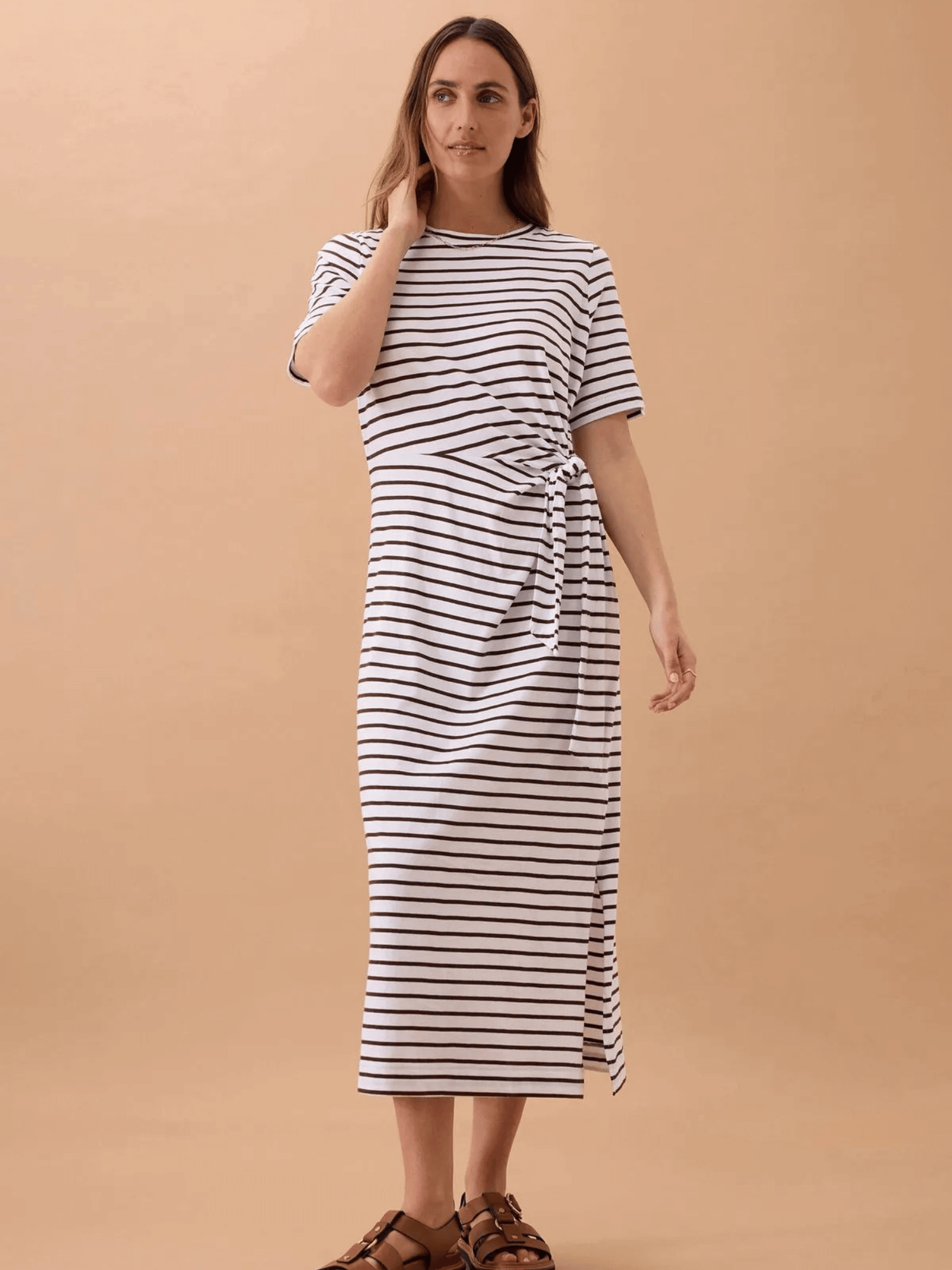 Allora Tie Midi Tee Dress | Chocolate Stripe