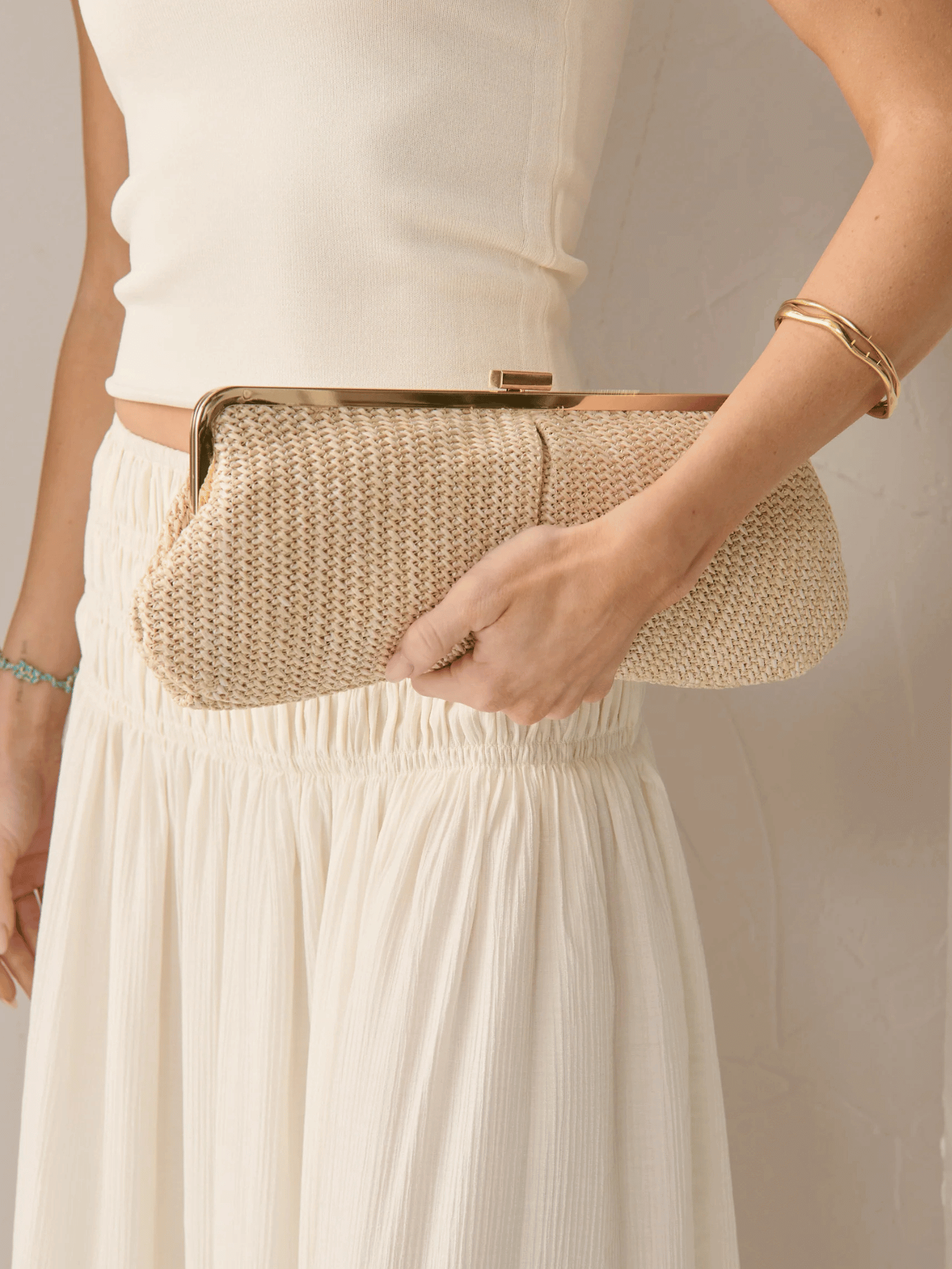 Chic, minimal, and effortlessly polished, this straw clutch is your go-to for both day and night. Featuring a sleek metal closure, and a fully lined interior, it's designed to hold your essentials in style.