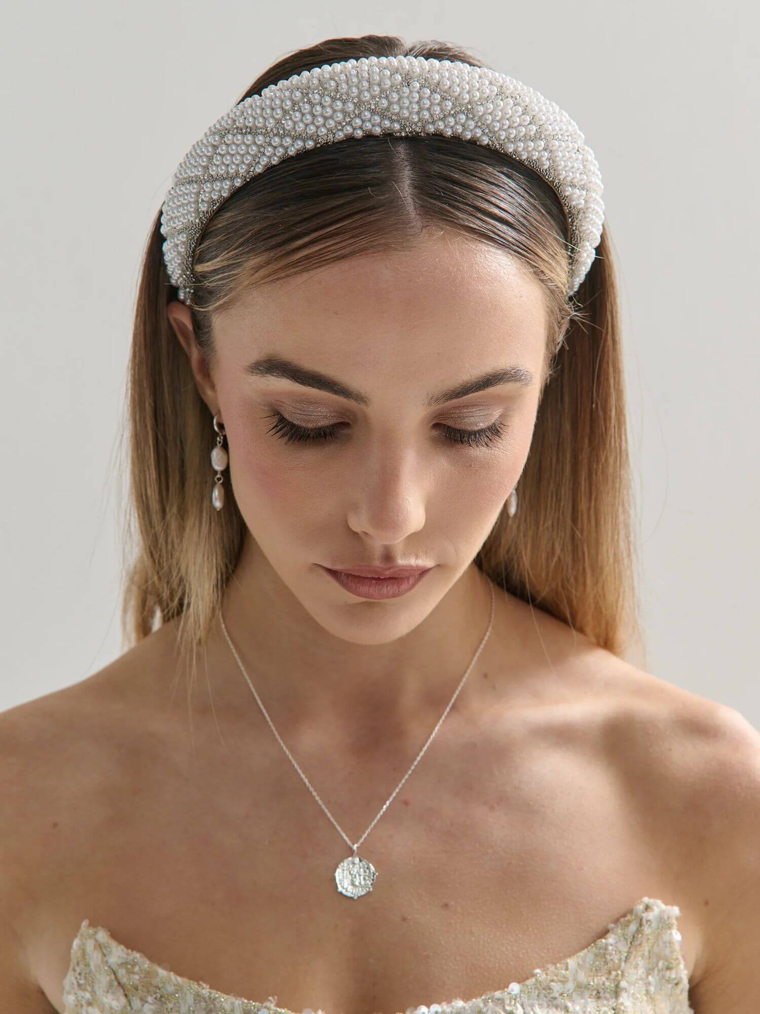 Angels Whisper Diamond Pearl Beads Statement Headband