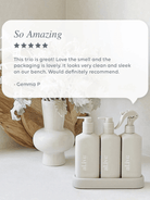 Introducing our Premium Kitchen Trio - the ultimate solution for your kitchen cleaning needs. This set includes our Dishwashing Liquid, Bench Spray, and Hand Wash, all conveniently nestled within a beautifully designed custom tray.