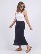 This bias cut skirt will be a favourite in your wardrobe. Dress this skirt up with heels or style everyday with sandals / sneakers and a denim jacket.