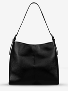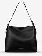 Built to handle almost any size impulse purchase, the 'Forget About It' bag has a magnet close top, an edgy angular silhouette, and branded strap buckles.