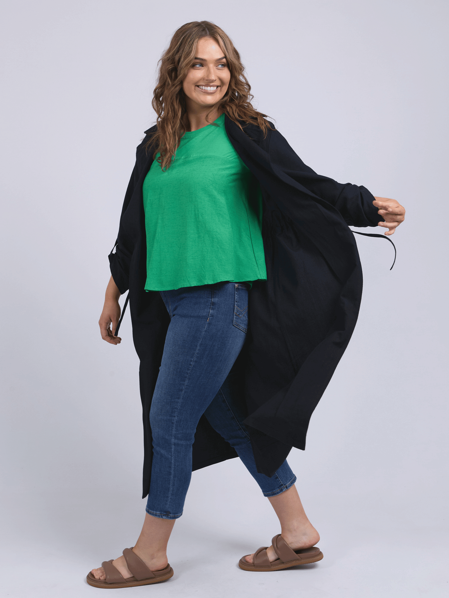 The linen trench is a gorgeous lightweight jacket - perfect for layering through the cooler Spring and Summer mornings and nights.