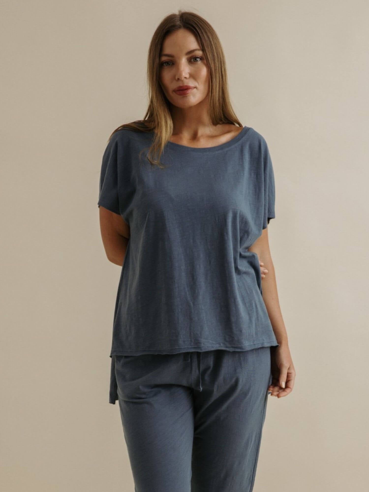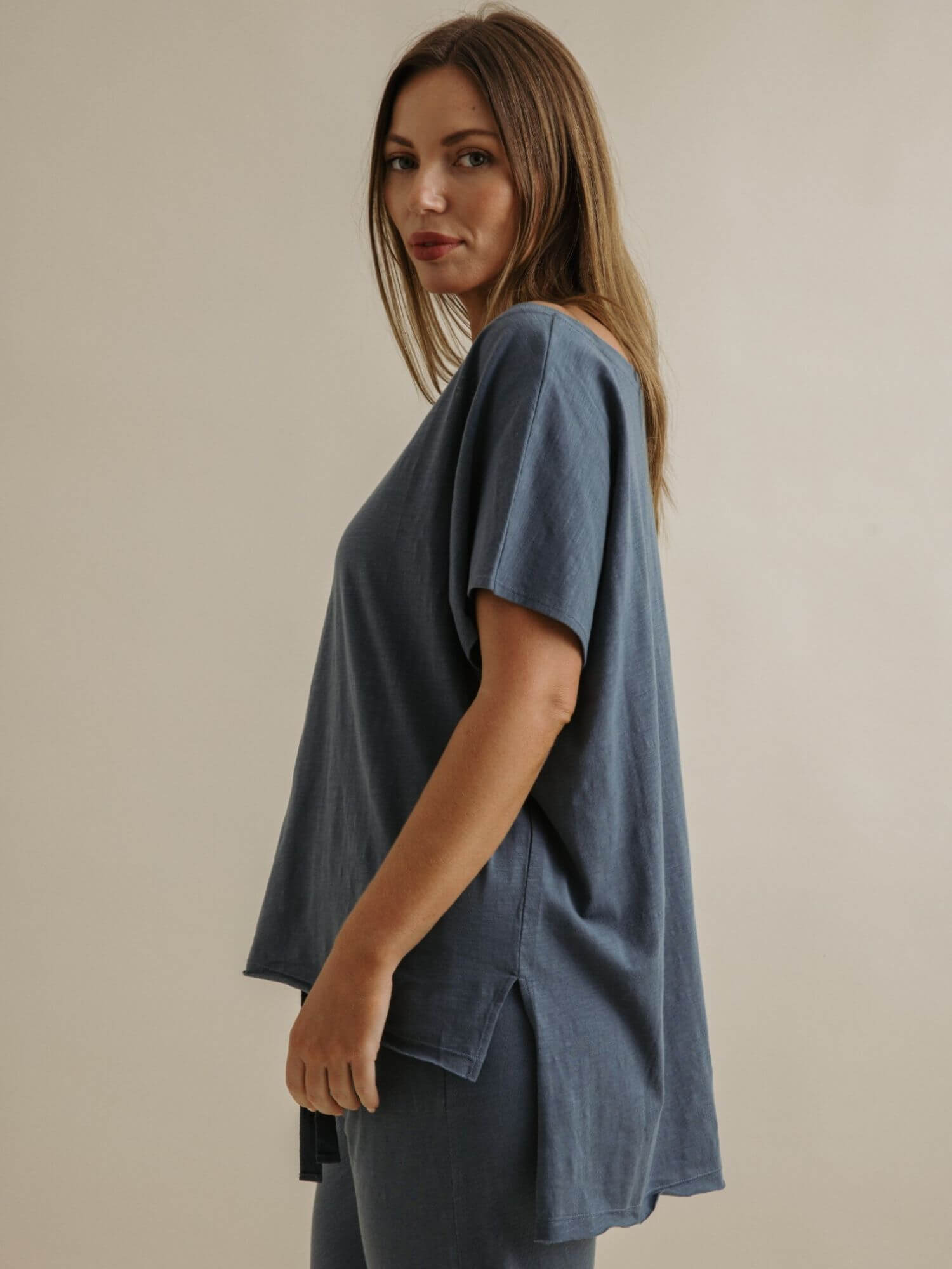 Guarenteed to be your new favourite tee! Relaxed, clean and a dream to wear! This tee is true to brand with a high low hem. The simpliest silhouette yet so much better than a basic. Organic Cotton slub, soft, breezy.