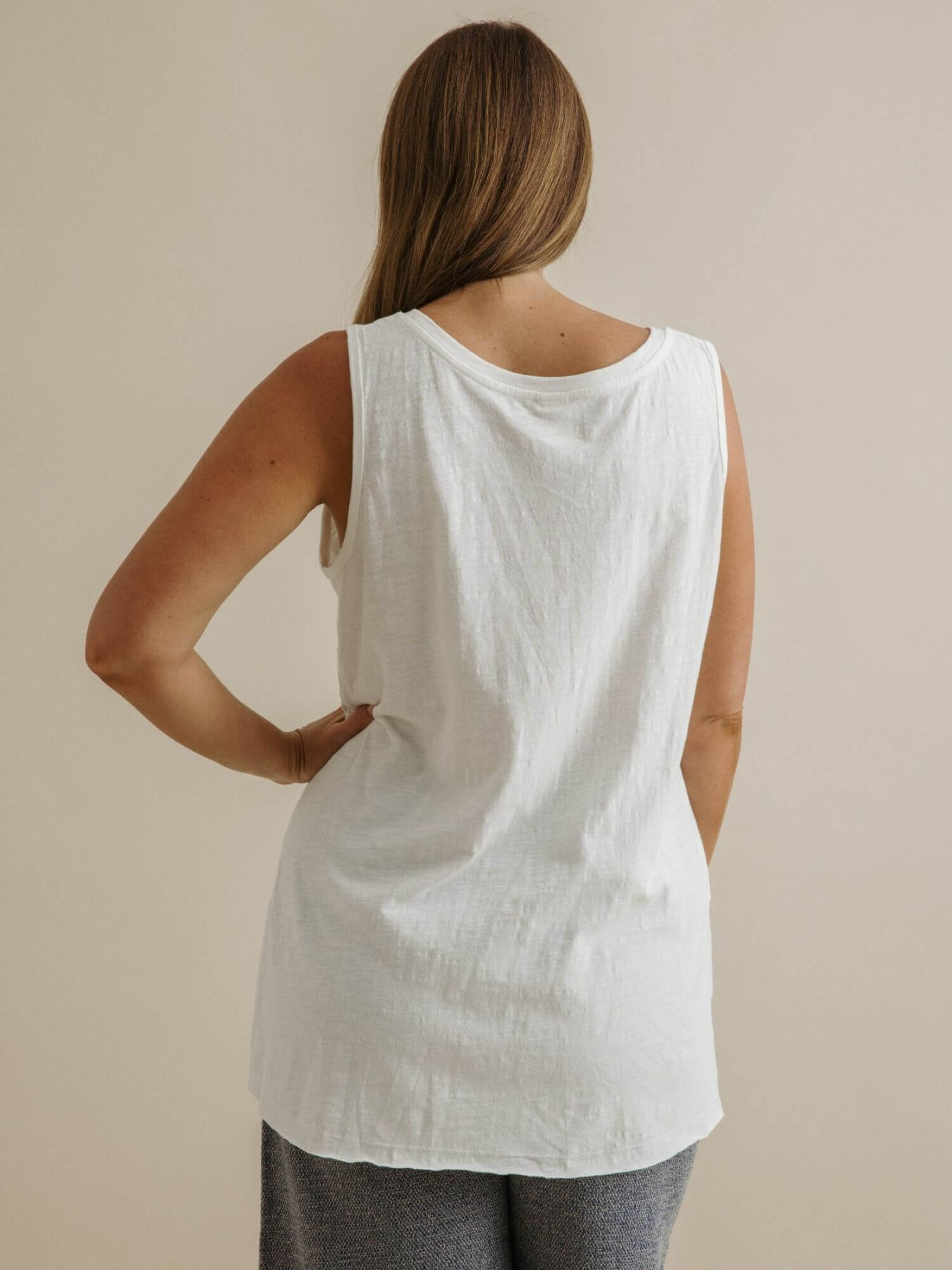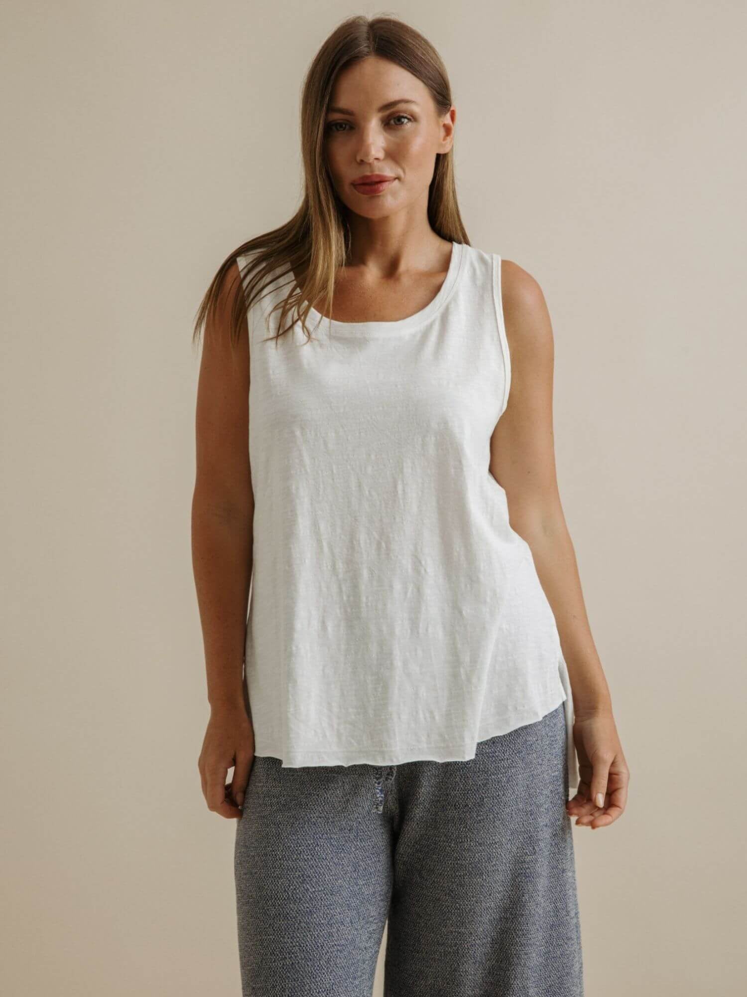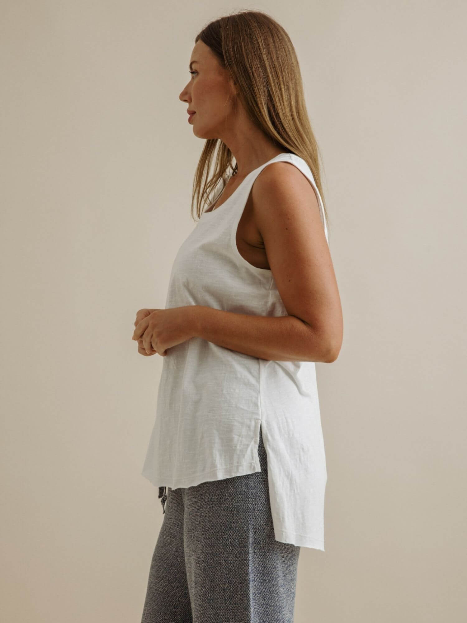 Effortlessly simple, intentionally crafted. Made from 100% organic cotton, the High Low Singlet offers a soft but textured, relaxed yet refined finish; like something you didn’t know you needed but now can’t live without. It’s the kind of piece you throw on without thinking, yet it feels thoughtful. Wear it solo on warm days or layer it!