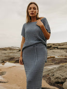 Perfect for layering on breezy days or wearing solo when the air shifts just right. Thoughtful, understated, and quietly bold; like your favorite coastal escape in sweater form.
