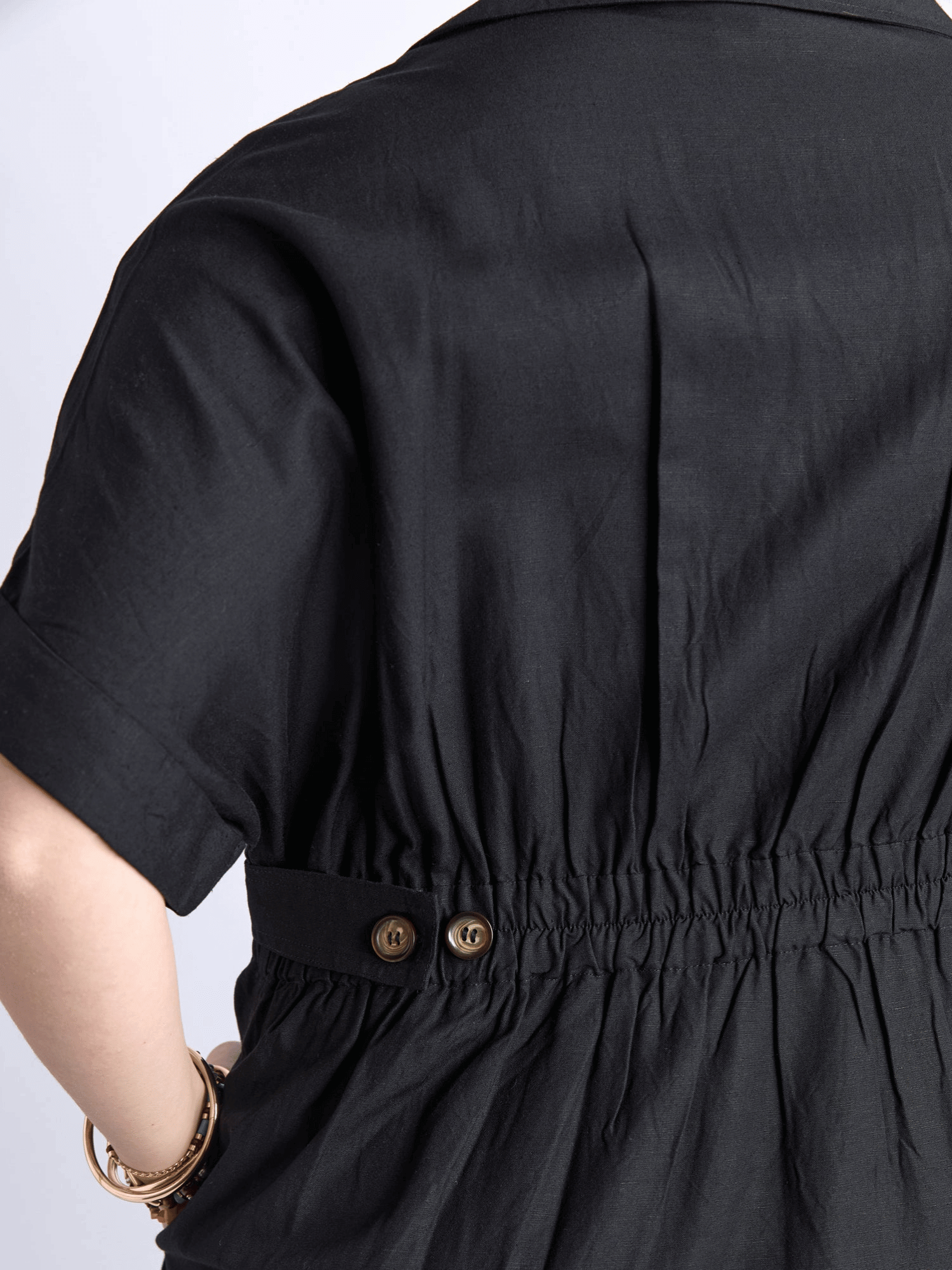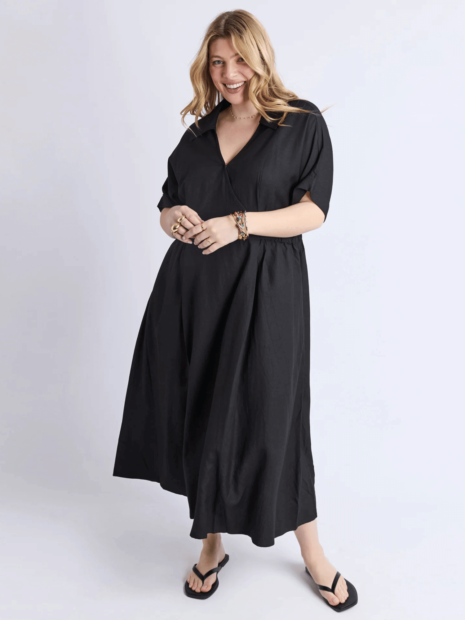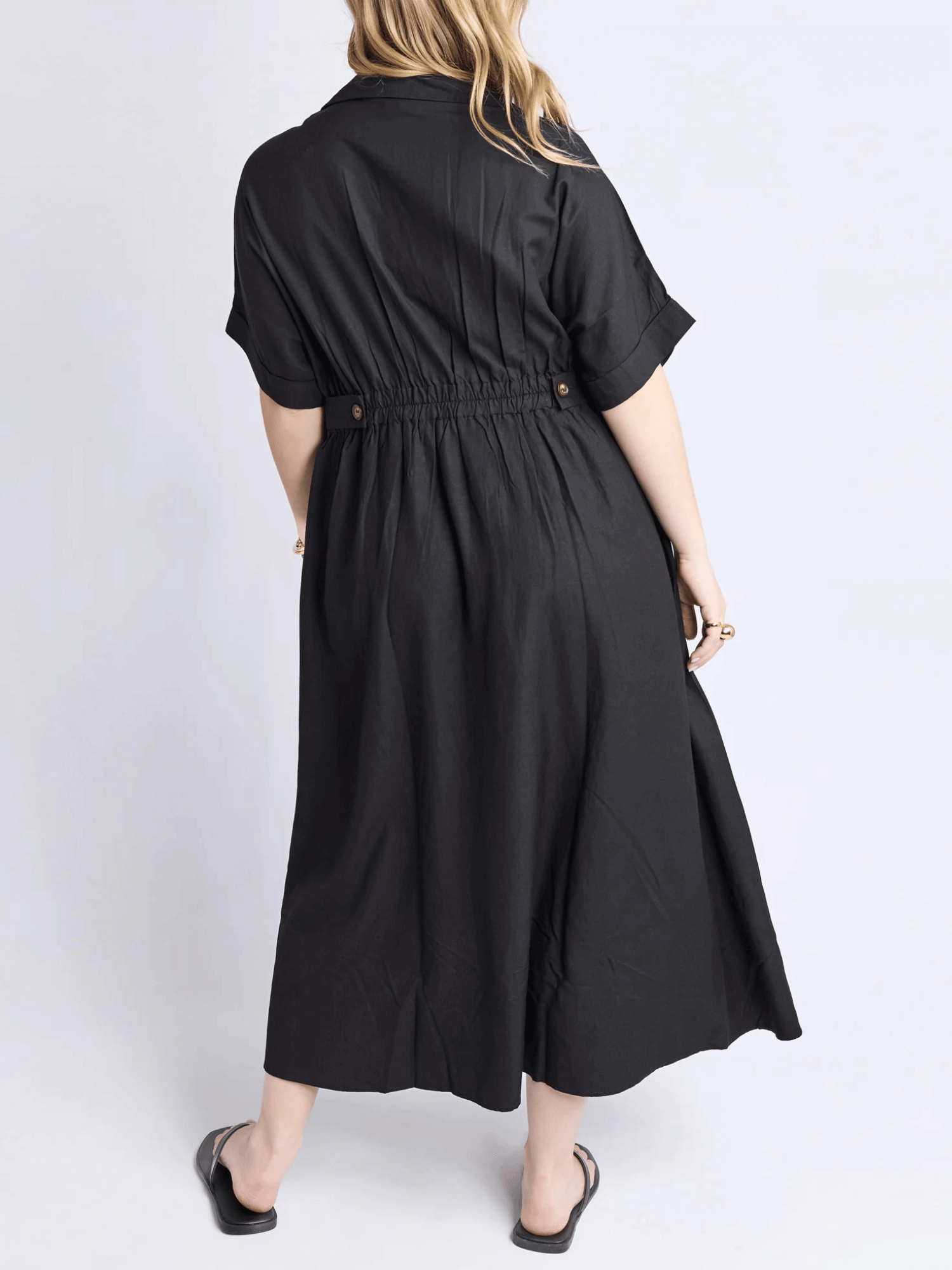 A stylish piece to be worn on repeat. The Hillary Dress made from a cool and comfortable linen blend features a flattering adjustable button waist and vee neckline.