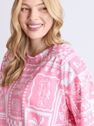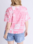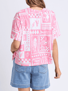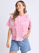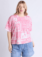 The Chin Chin Tee all-over yardage print adds vibrant detail, elevating this piece with a distinctive and contemporary style.