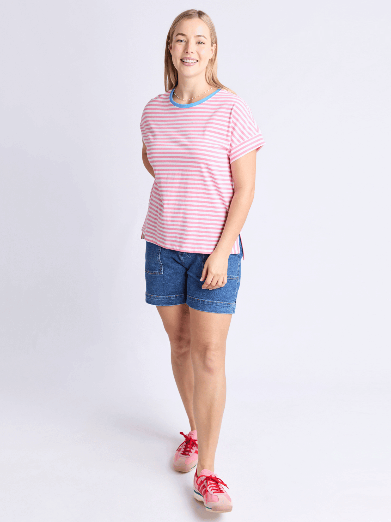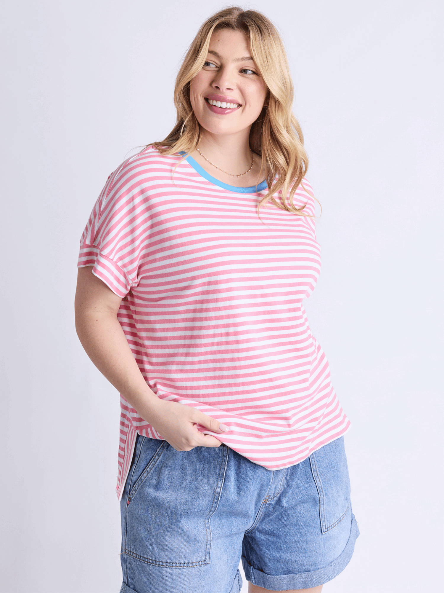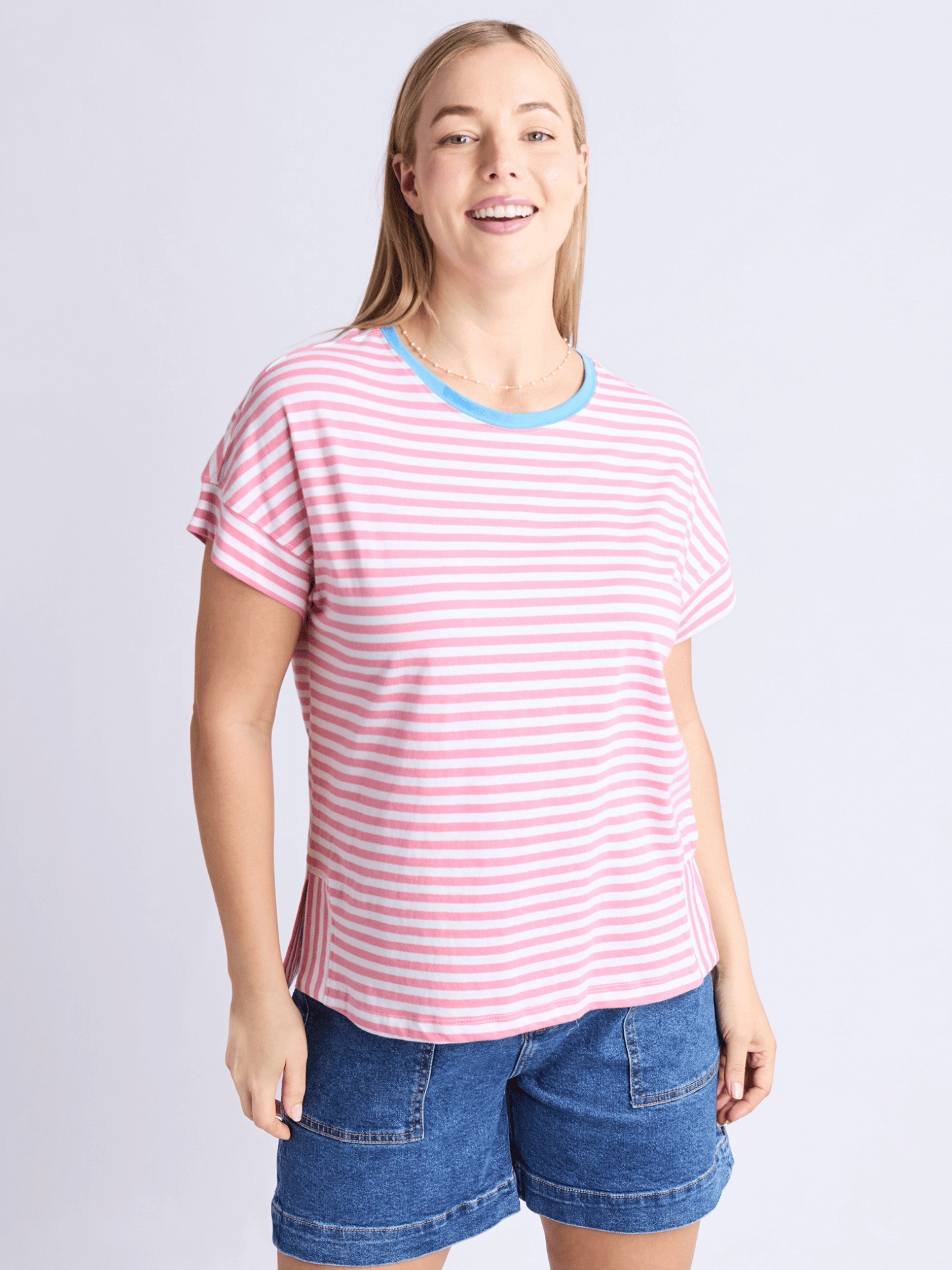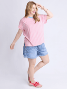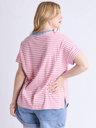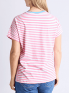 Jarrah Stripe Short Sleeve Tee | Geranium Pink + White Stripe + Azure