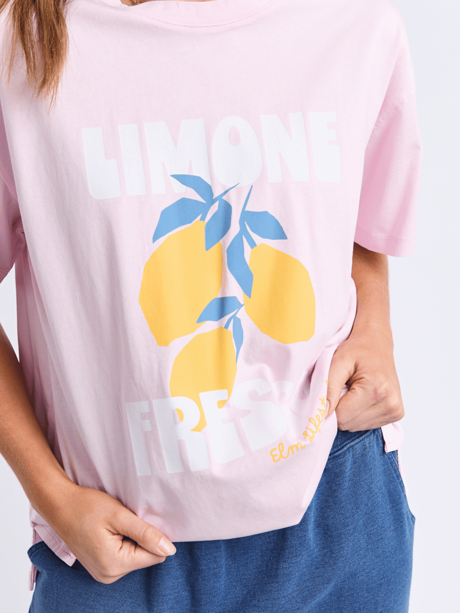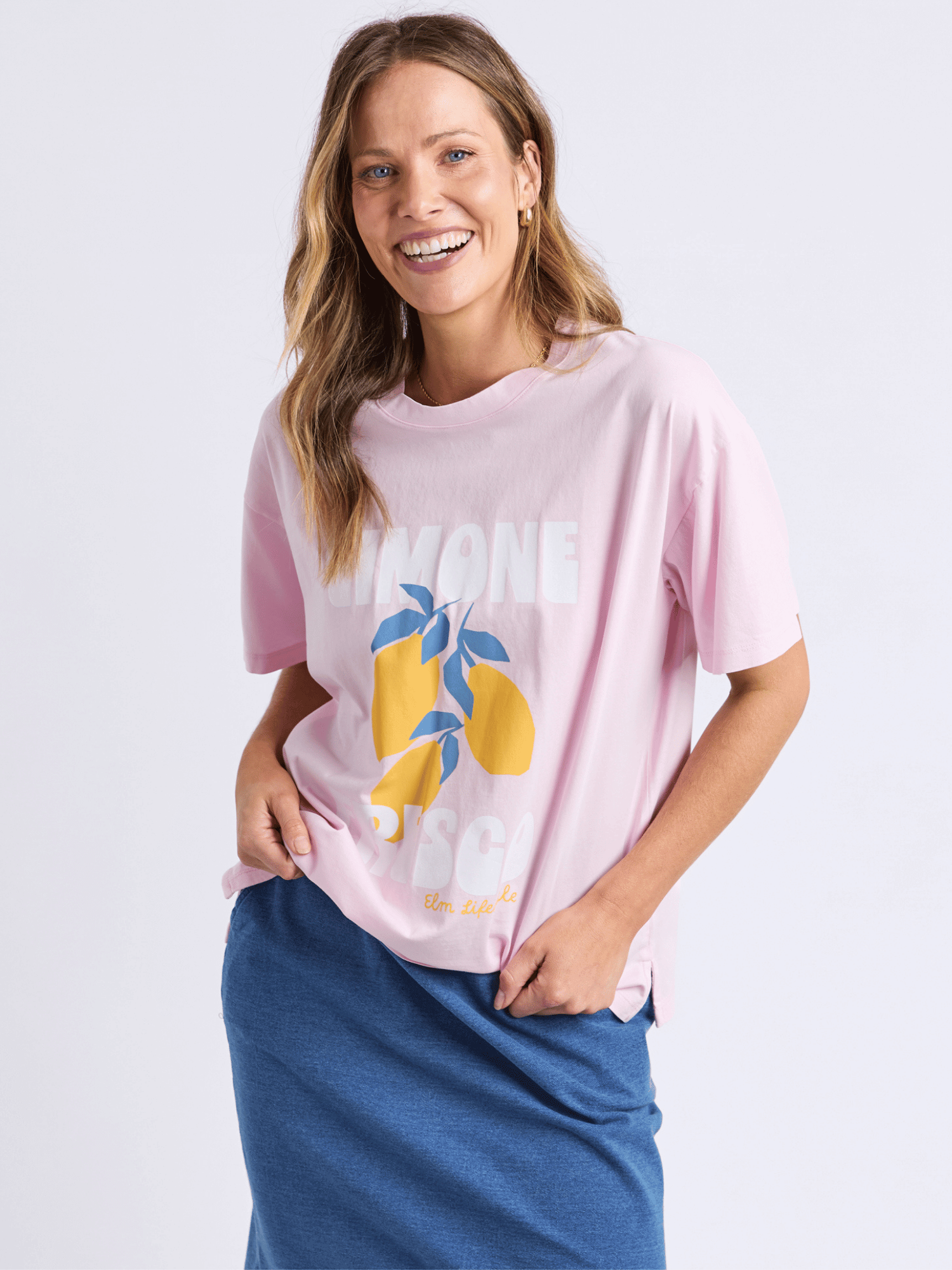 The Limone Fresco Tee brings playful vibes for carefree days and with Elm’s exclusive Limone artwork, it adds a fun and unique splash of summer to your wardrobe.