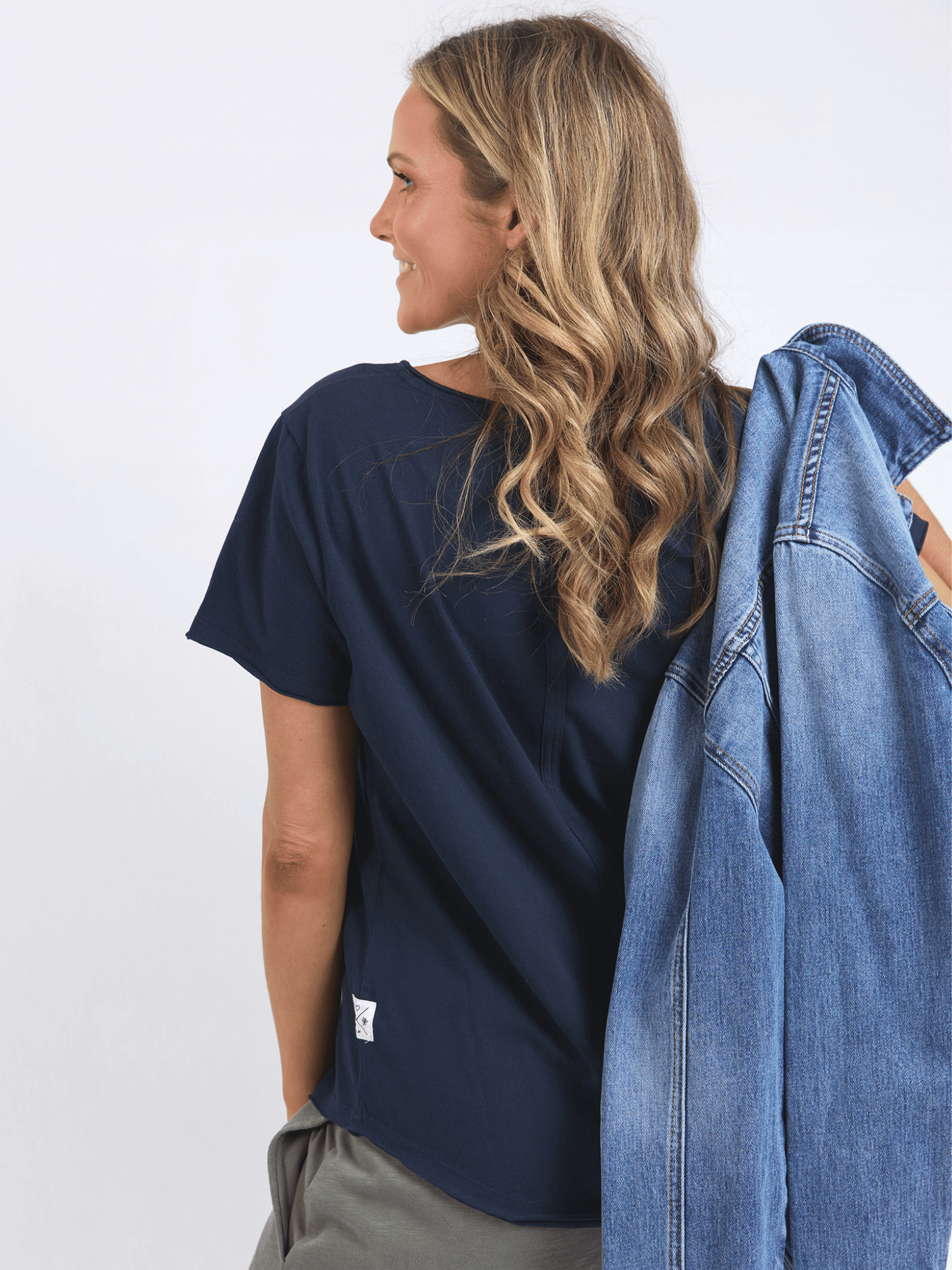 - Raw edge detail on neckline & sleeve