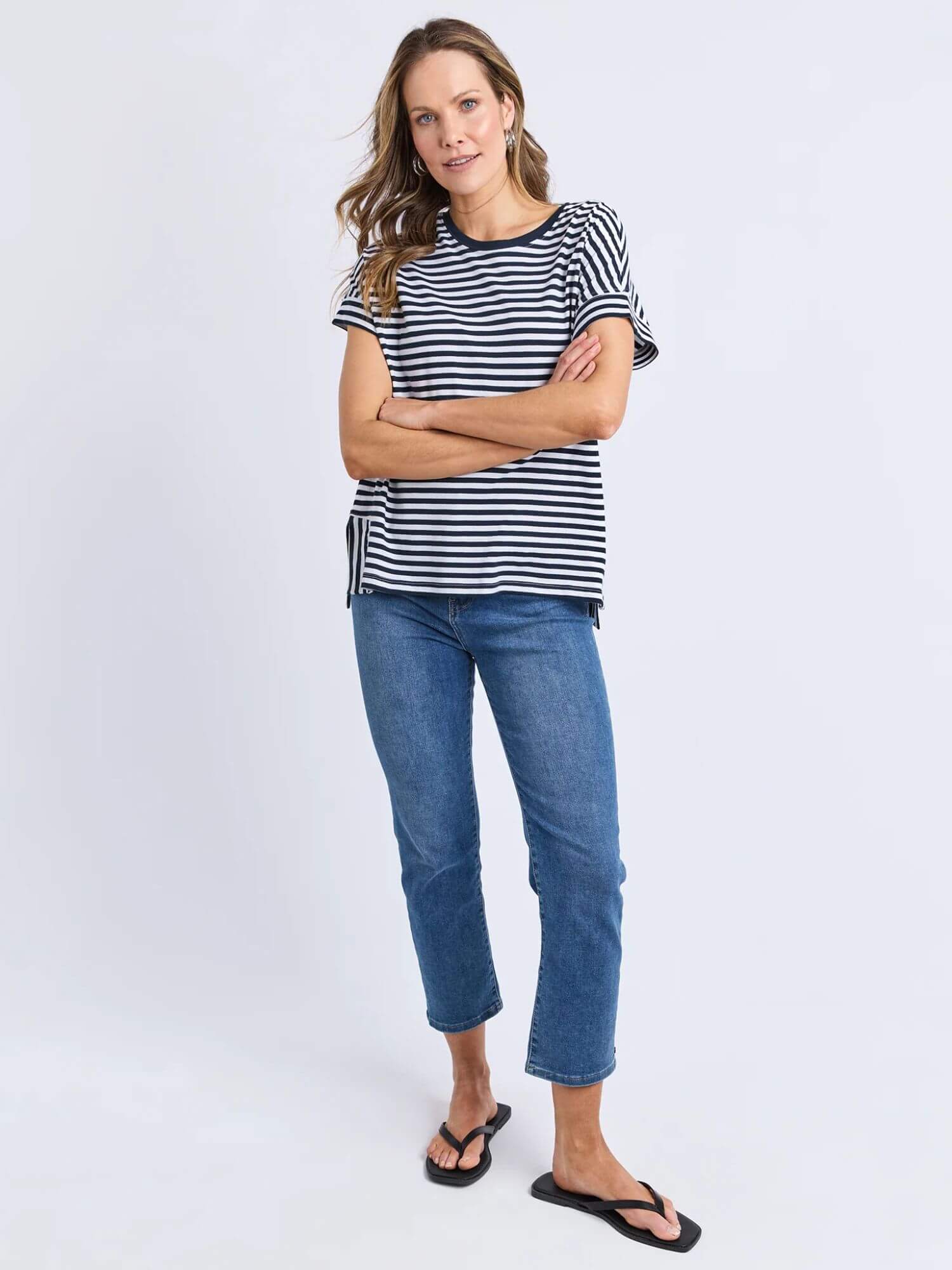 Yara Stripe Short Sleeve Tee | Navy + White Stripe