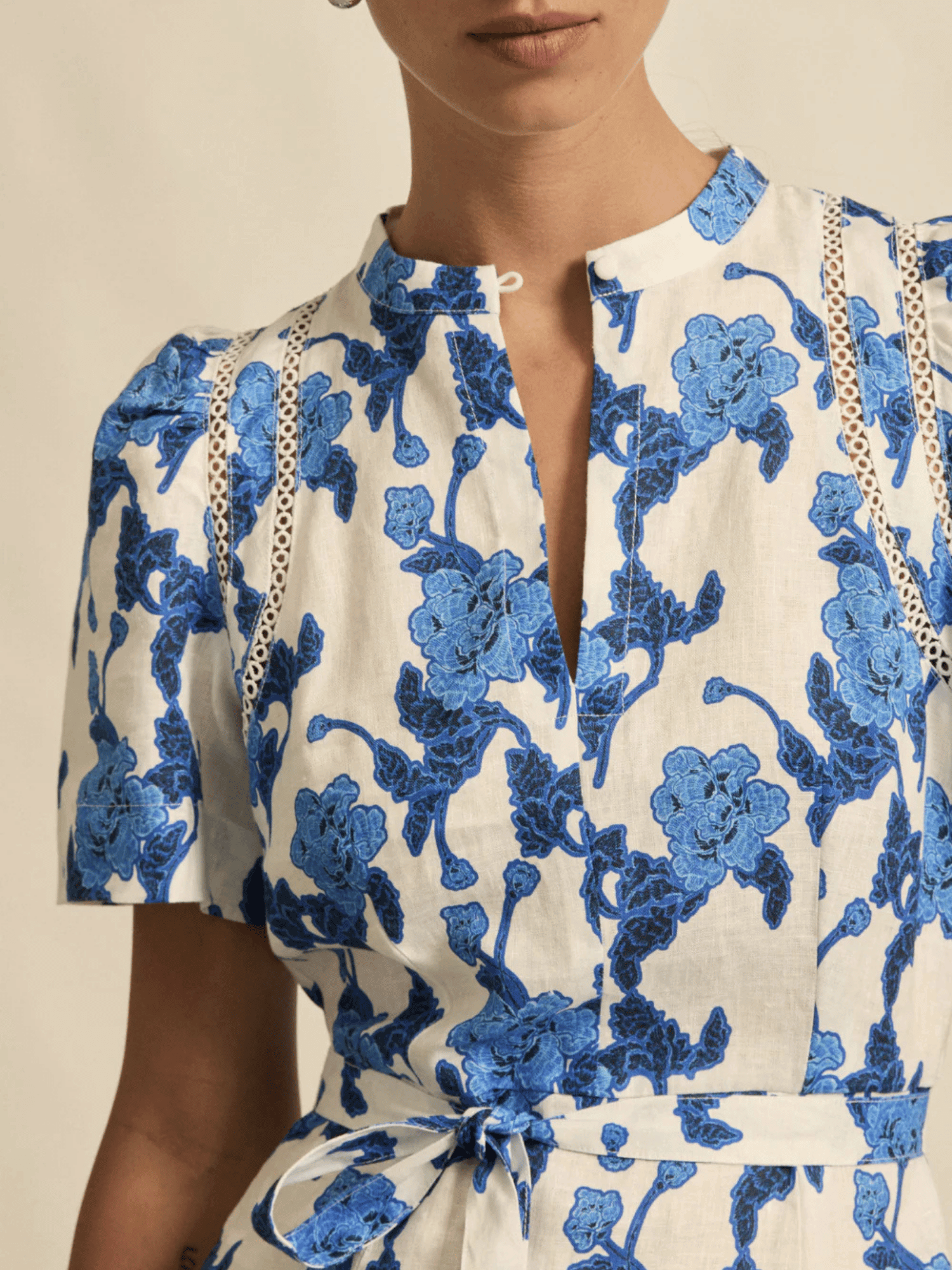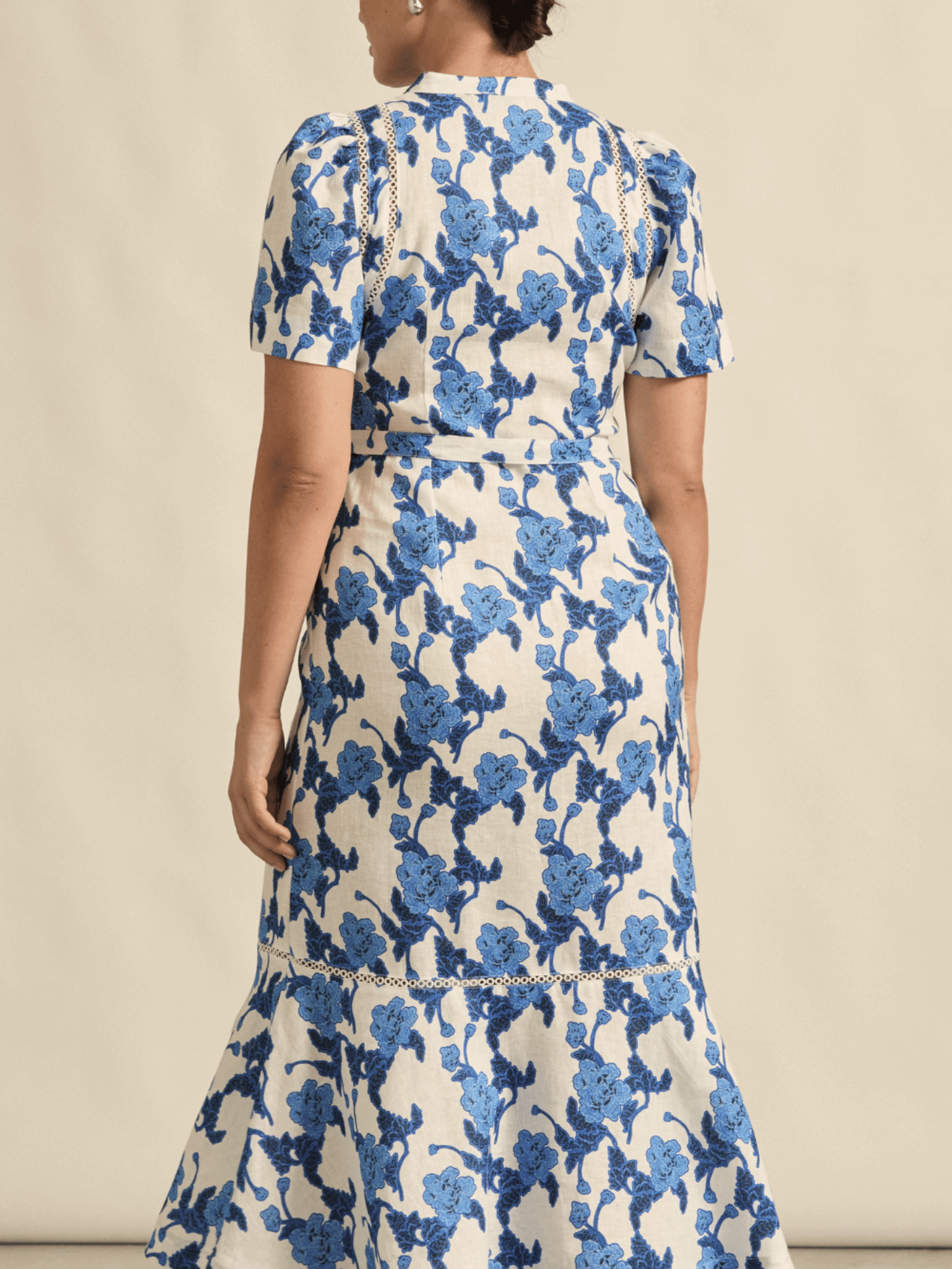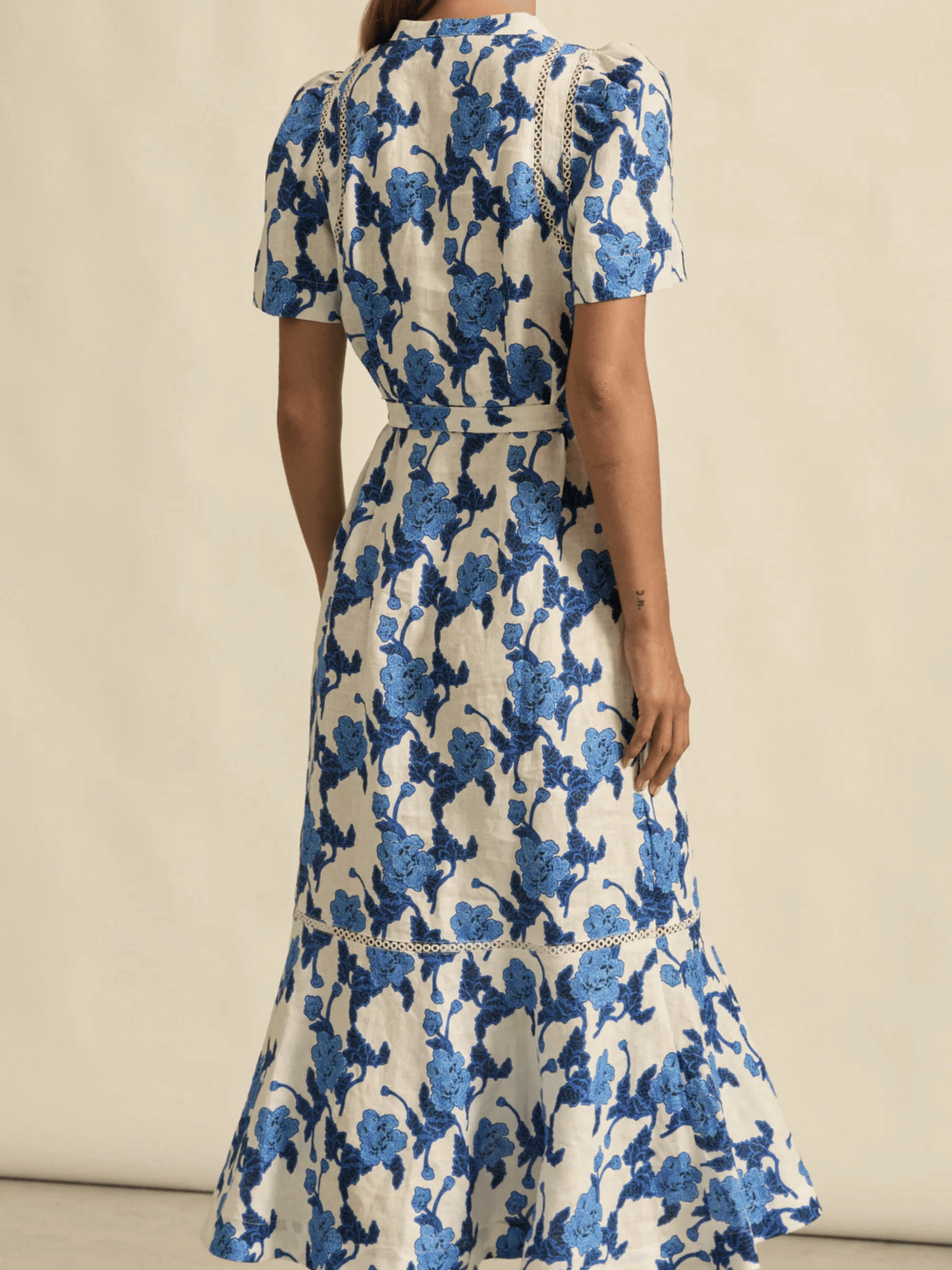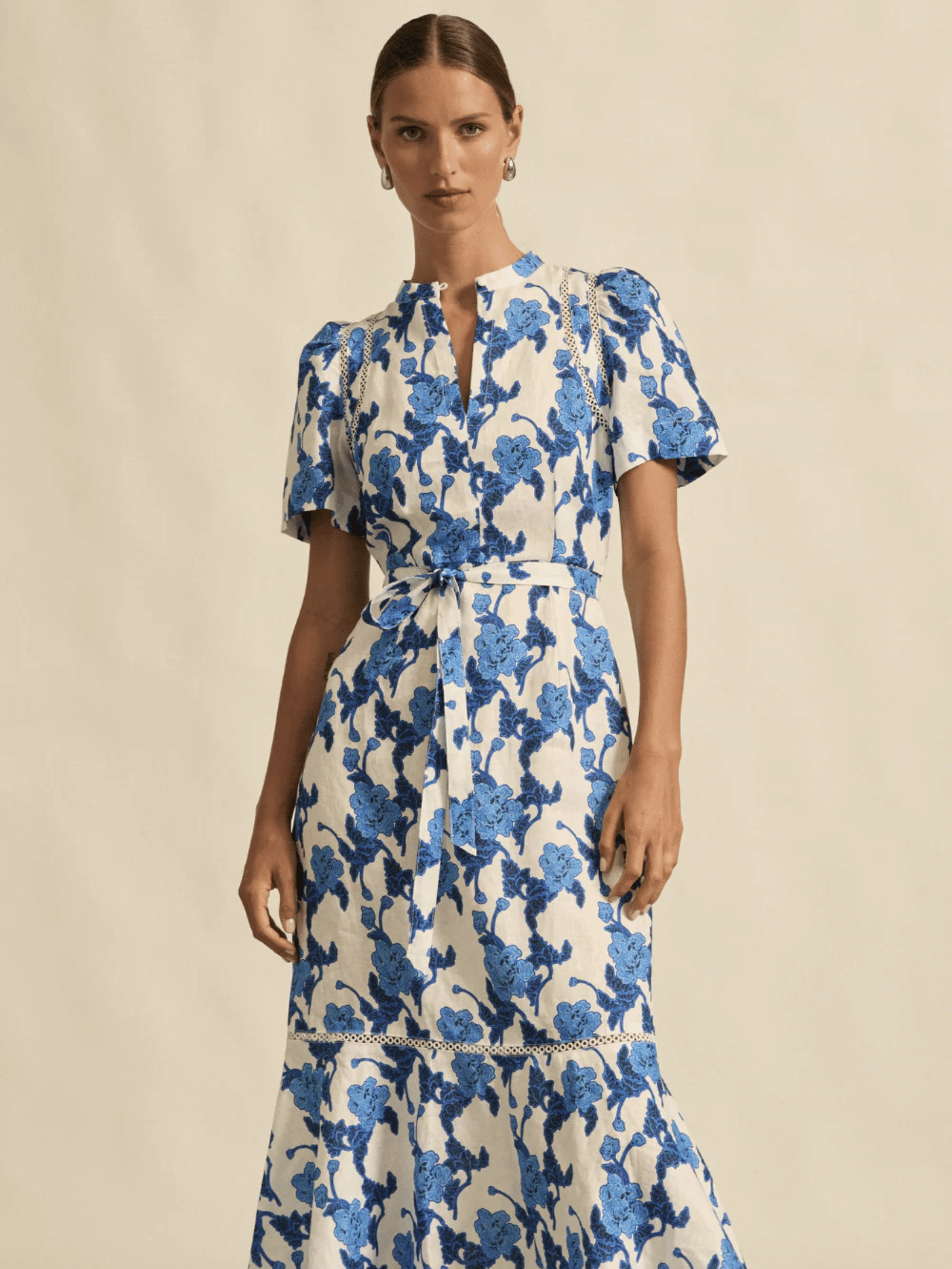 Lace accents and tulip sleeves add an expressive, romantic dimension to this elongated silhouette. The cable dress offers sculptural structure with feminine ease. This fresh and trending rich floral print is designed to flatter while making an impact.