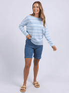 Jayne Stripe Throw On top | Sky blue + White Stripe