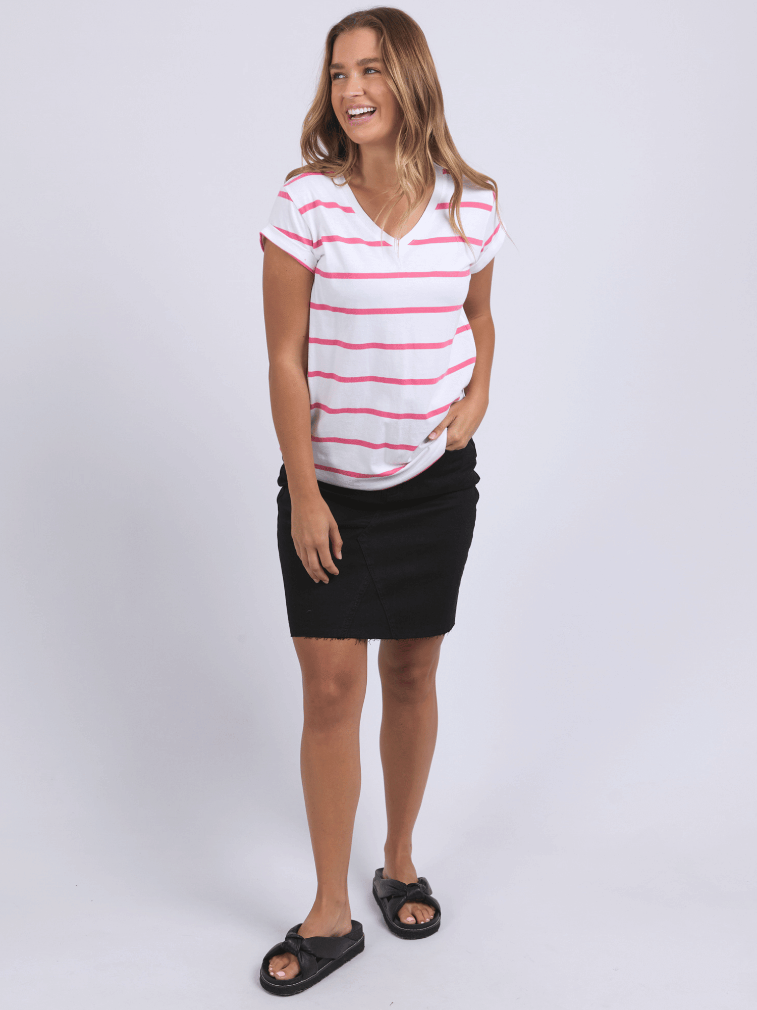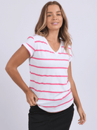 Manly Stripe Vee Tee | Hot Pink + White Stripe