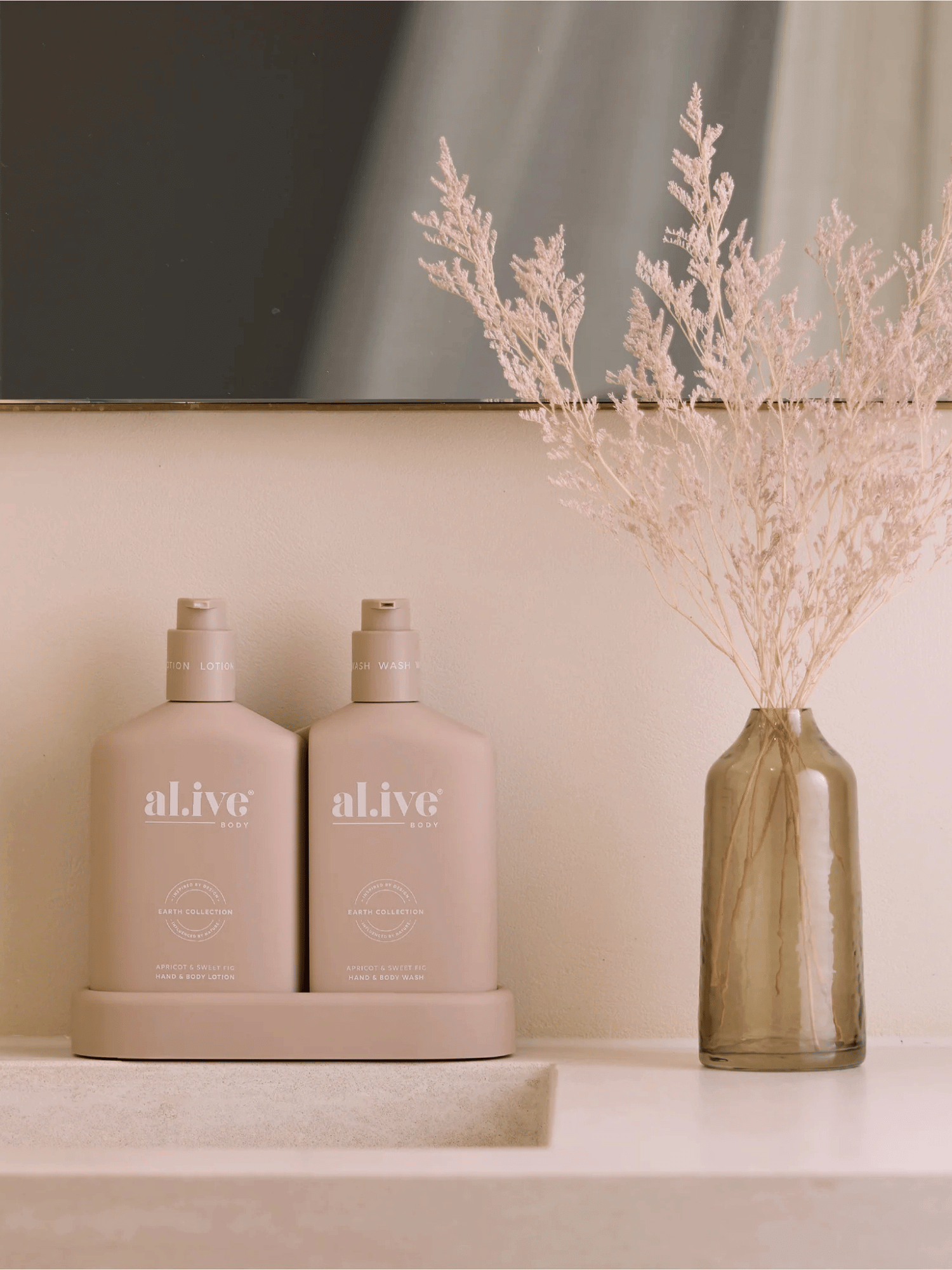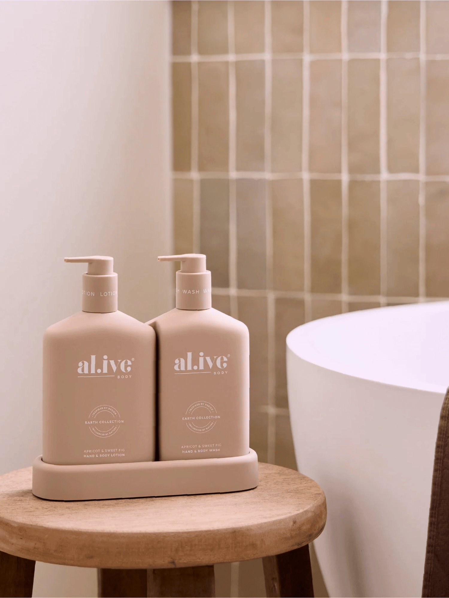 Al.ive Body Wash & Lotion Duo + Tray - Apricot & Sweet Fig