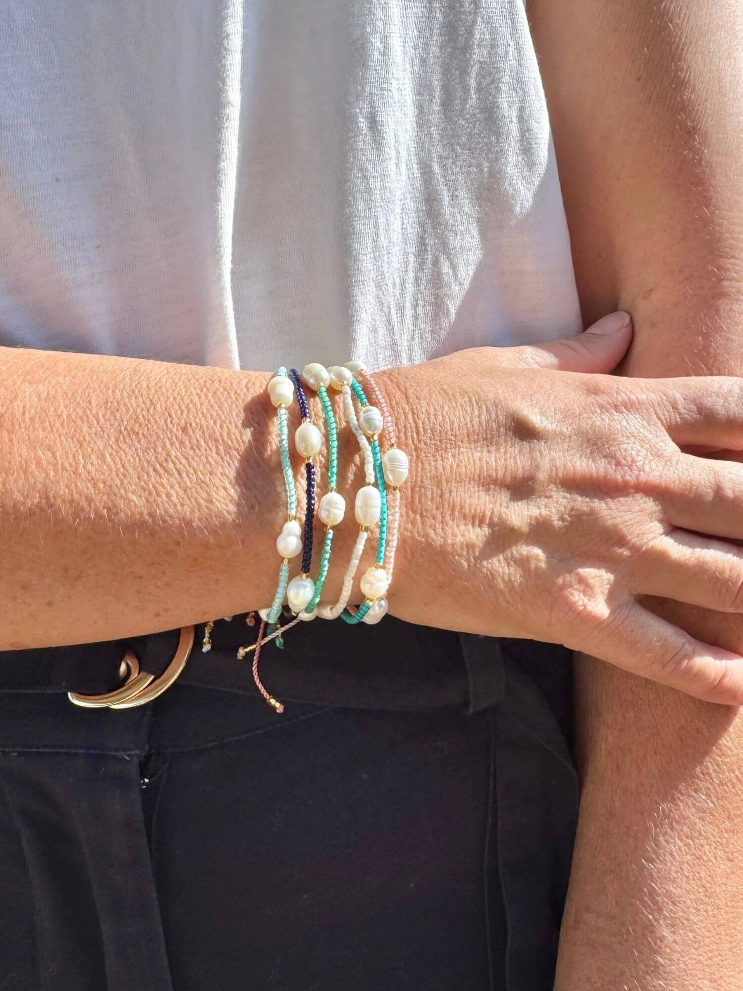 Pearl Essence Seed Bead Bracelet | 3 Pearl Fuschia