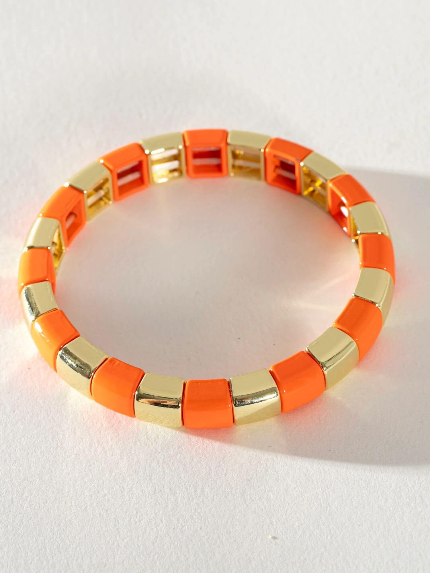 Gold Enamel Stacking Bracelet | Stripe Rounded Orange + Gold