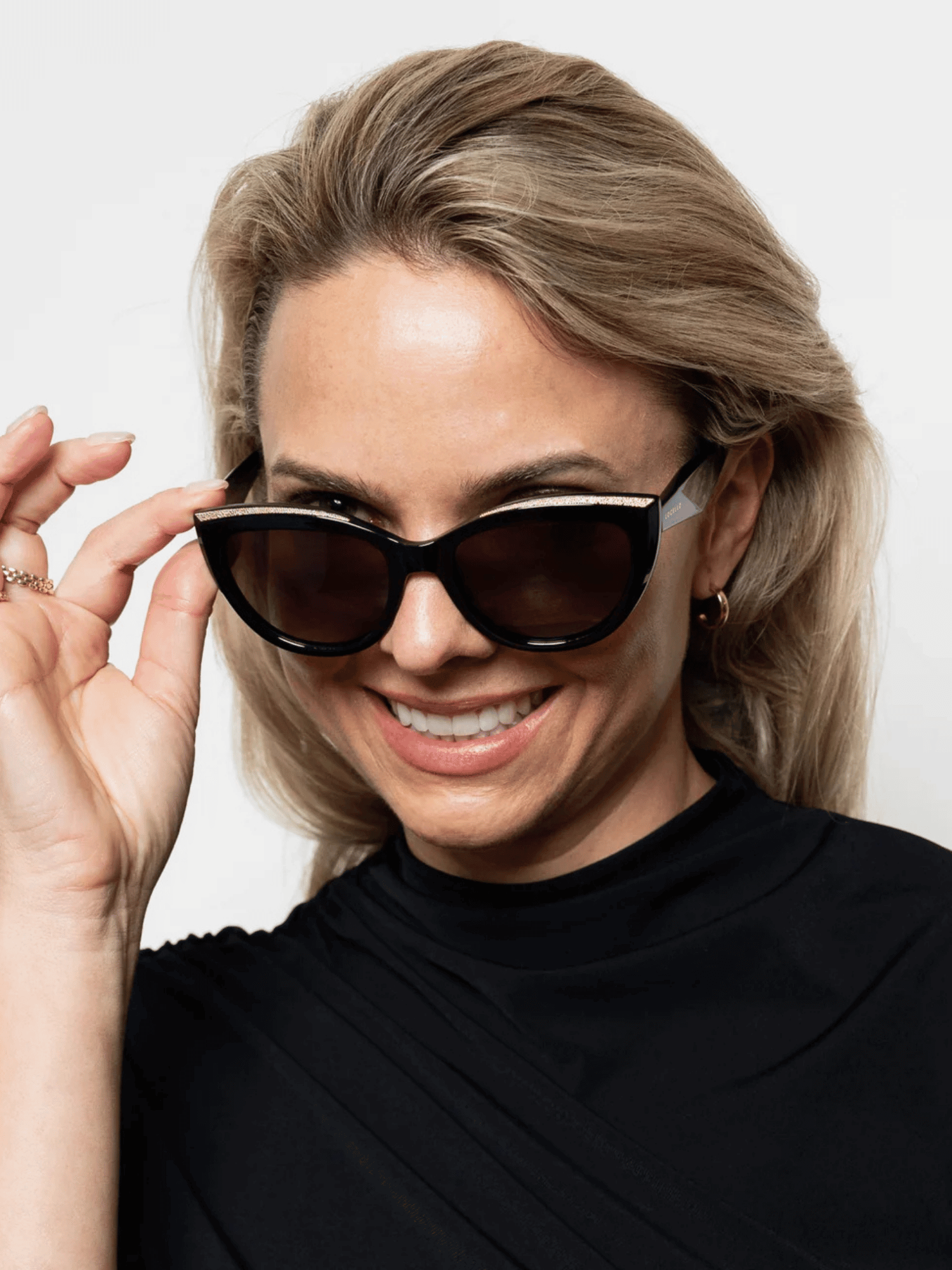 Gia isn’t here to play it safe. With a sleek black cateye frame, bold gold accents above the eyes, and sharply angular arms, she brings a sculptural edge to your everyday look. The polarised smoke lenses offer 100% UV protection, while the unexpected detailing makes Gia feel more like jewellery than eyewear. Confident, commanding, and a little rebellious. Gia’s isn’t just different; she’s unforgettable.