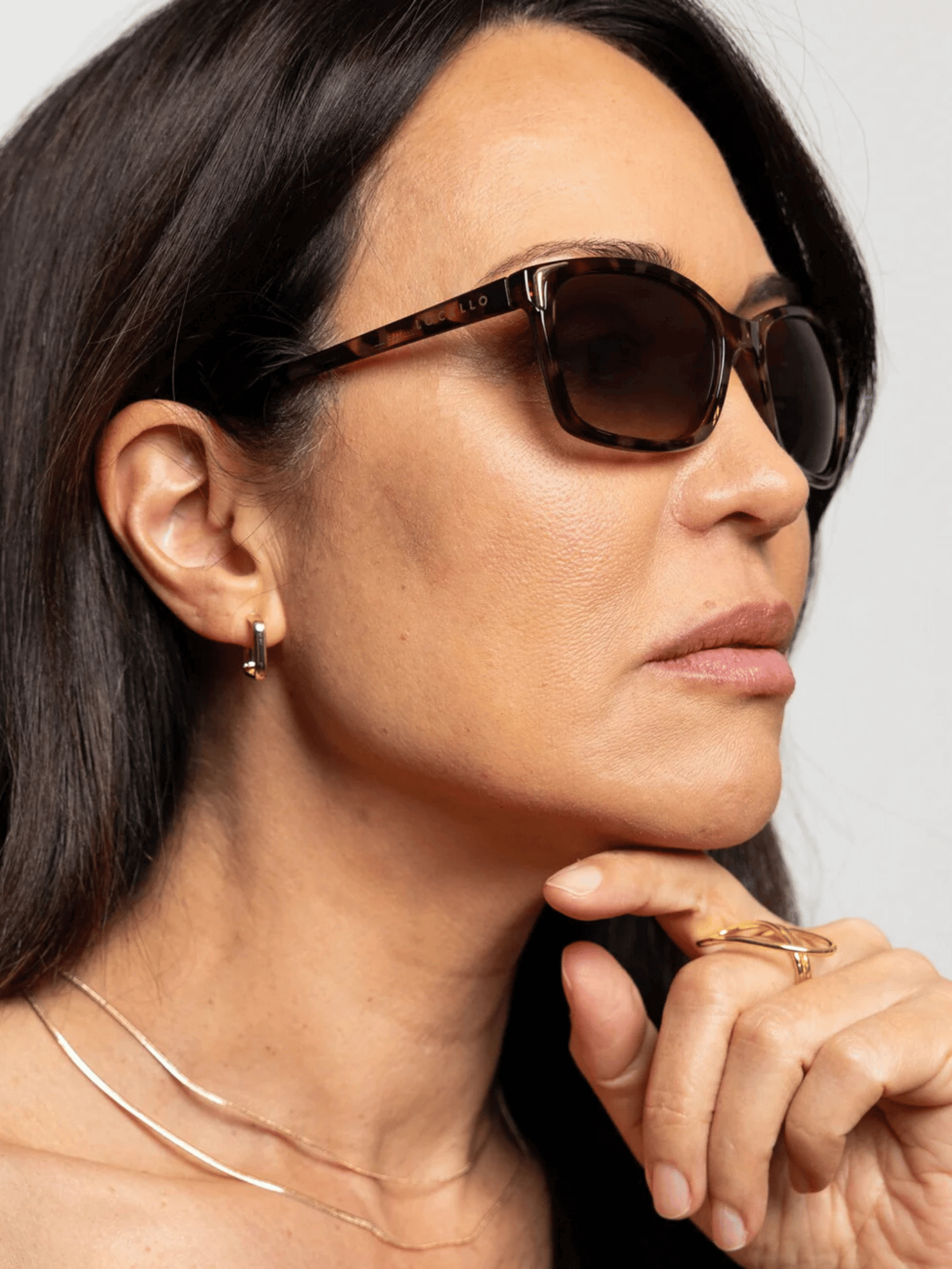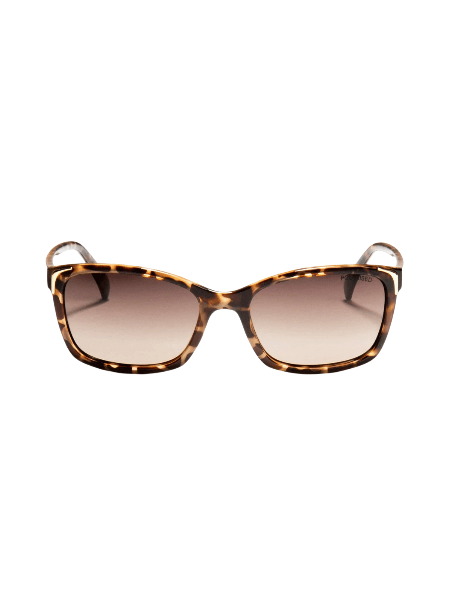 Her rectangular shape adds sass to a classic style of tortoiseshell with gold detailing. She has a smaller frame, making her a favourite for women on the go. Little Leticia reduces glare and protects your eyes with 100% UV protection.