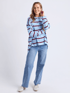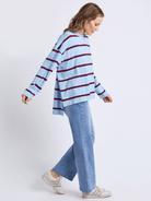Callie Stripe Long Sleeve Tee | Light Blue + Plum Stripe