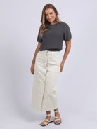 Effortlessly blend style and comfort with the Ace Skirt. The removable waist tie lets you customize the fit, adding a touch of versatility. Crafted from a soft, breathable fabrication, this piece offers just the right amount of stretch for all-day ease. Style it with a tee and slides for a casual everyday look, add a blouse and wedges to elevate or style with a knit and boots through the cooler months.