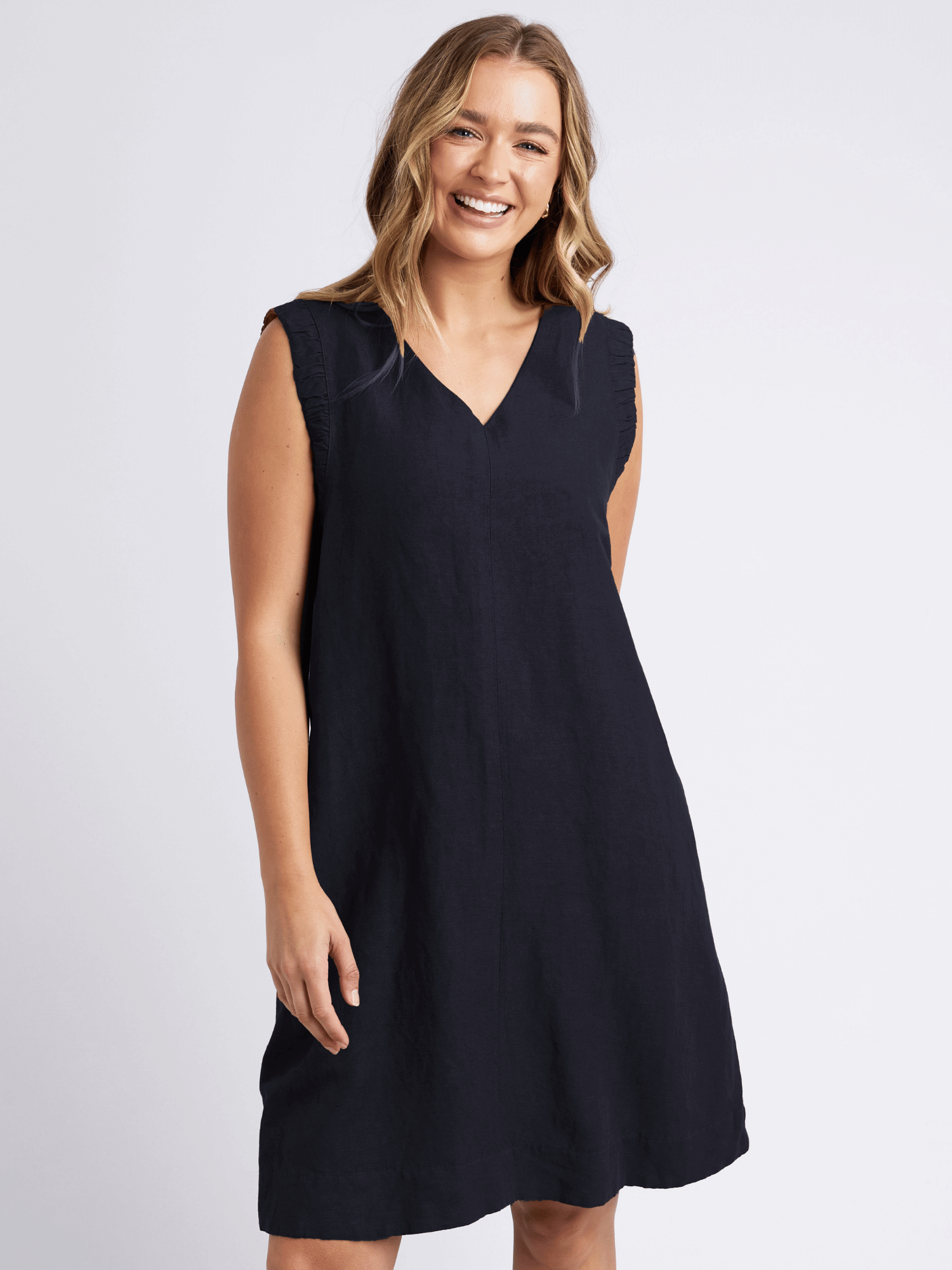 A breezy linen blend that's both stylish and comfortable. This dress is designed for those warm days when you want to look effortlessly put together. The fabric blend keeps you cool while maintaining its shape, making it a versatile wardrobe essential.