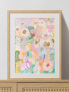 Jade's pieces combine simplistic florals with playful patterns and abstract forms in the background. Her technique is to paint layer upon layer until each section of the painting has pleasing colour combinations and textures that delight.