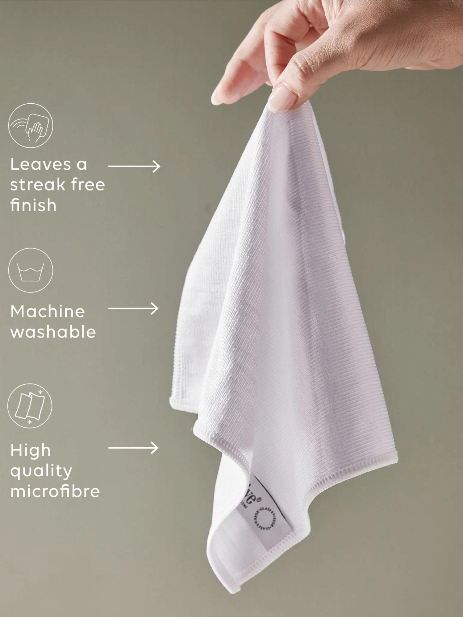 Introducing our Glass & Mirror Microfibre Cloth, the perfect companion to our Glass & Mirror Cleaner.