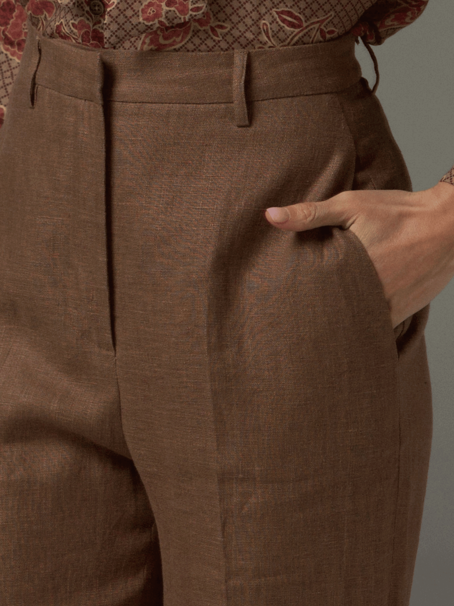 The Meridian Pant is the embodiment of sleek, effortless tailoring. Sitting high on the waist with angled side pockets, this cropped style finishes just at the ankle, making it the ideal partner for both casual and elevated looks.