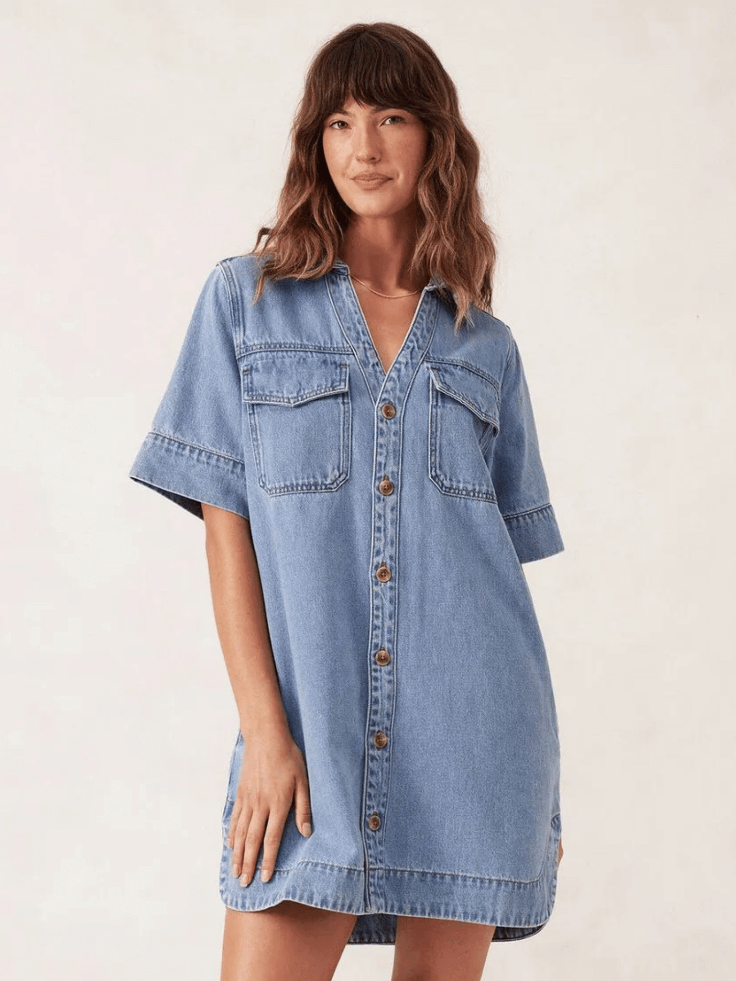 Sammy Relaxed Shirt Dress | Mid Vintage Blue