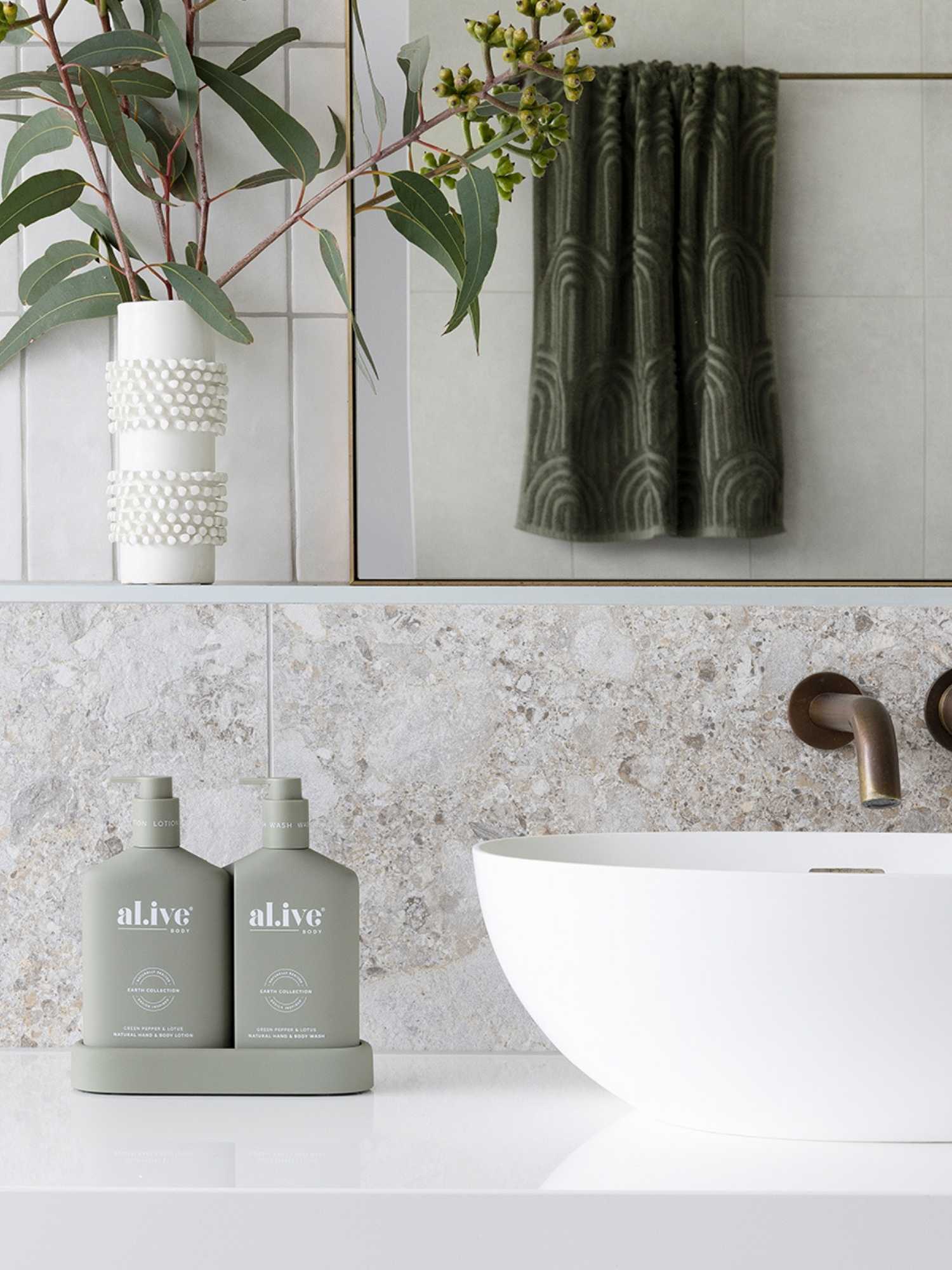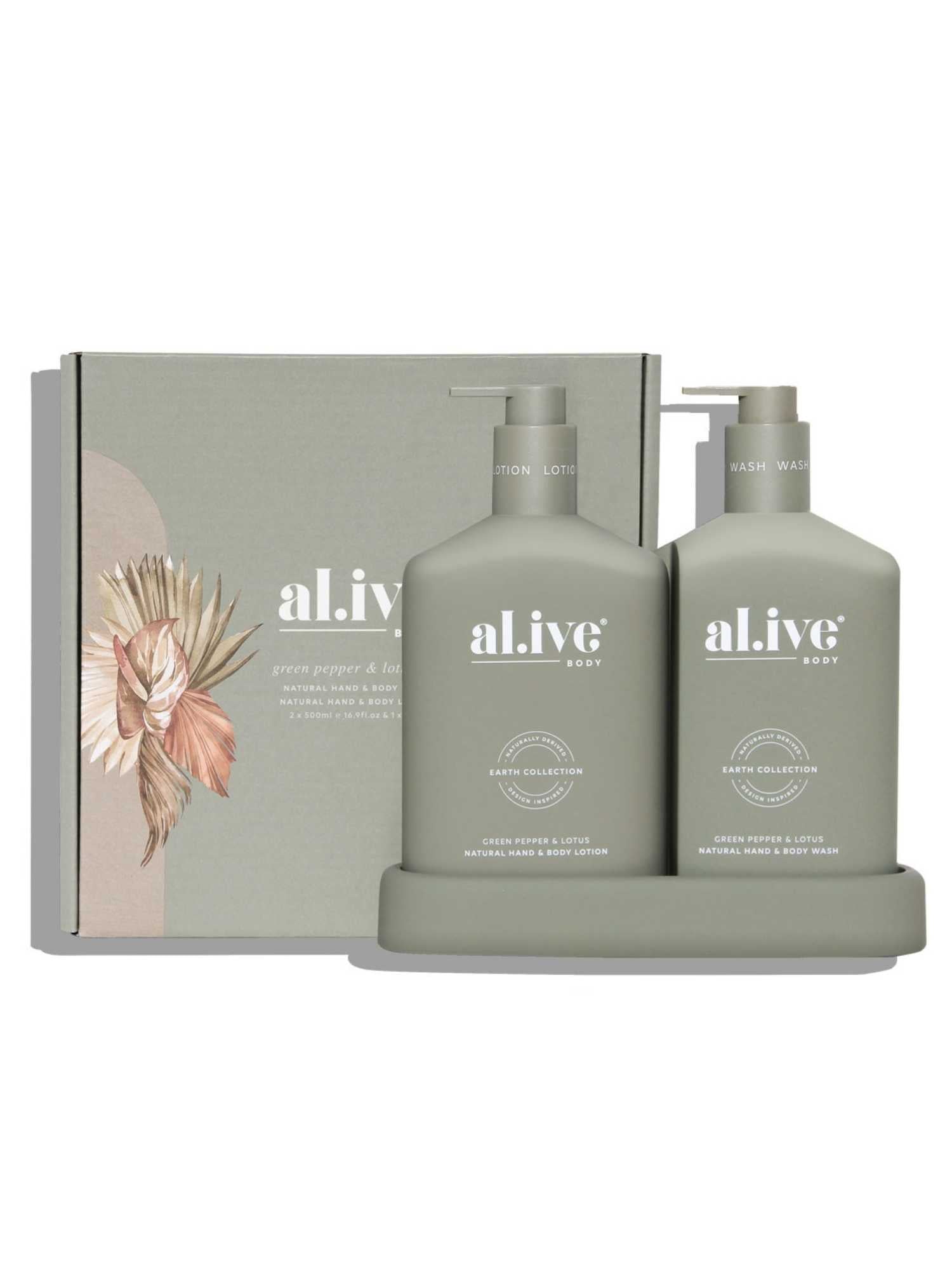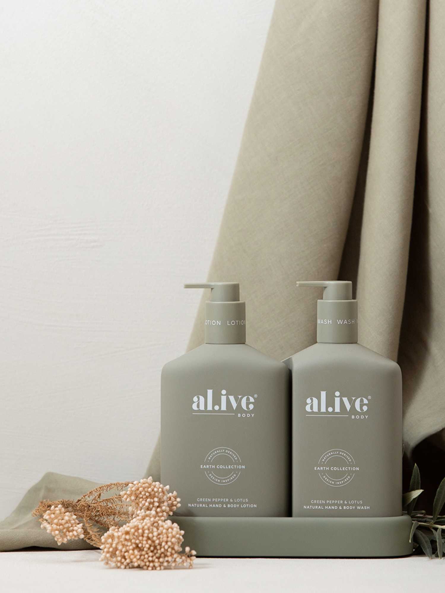 Al.ive Body Wash & Lotion Duo + Tray - Green Pepper & Lotus